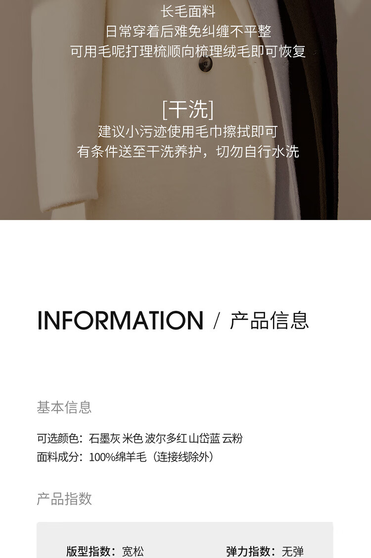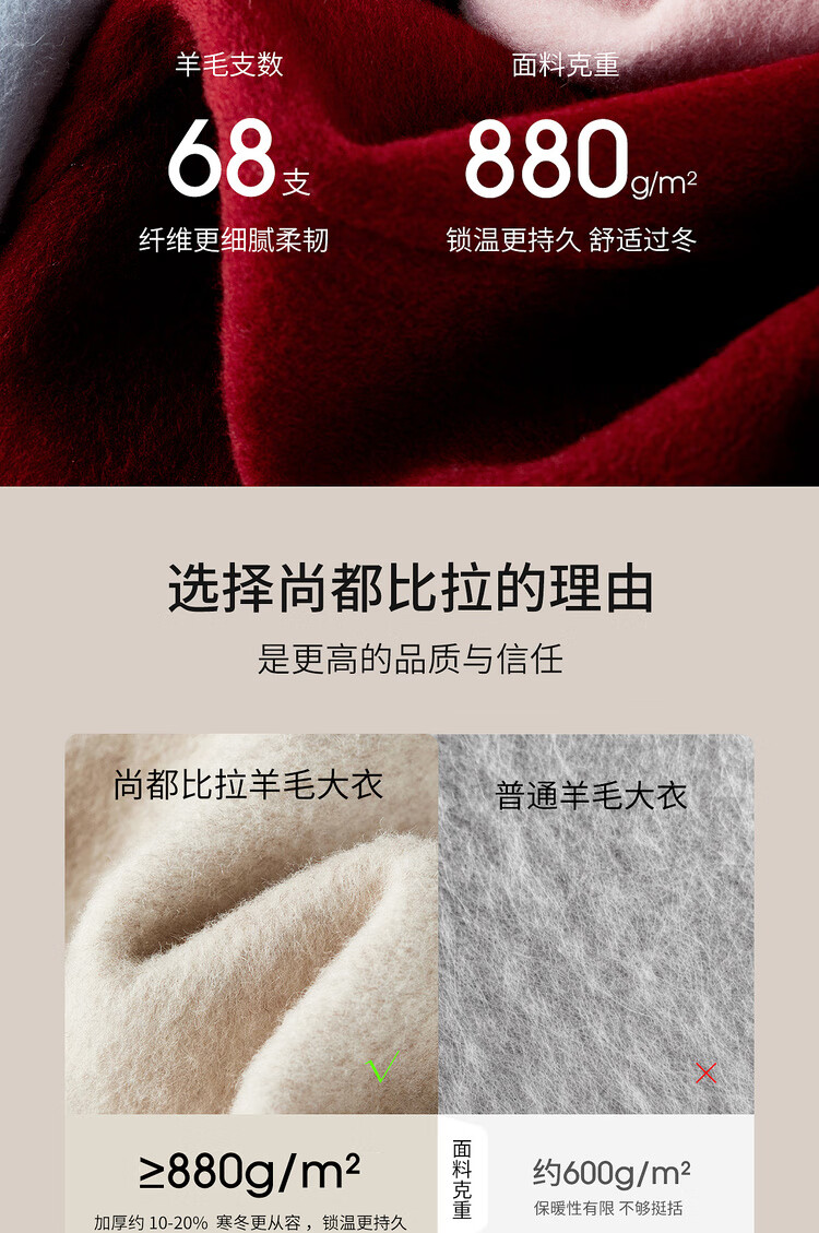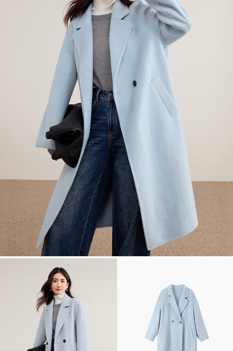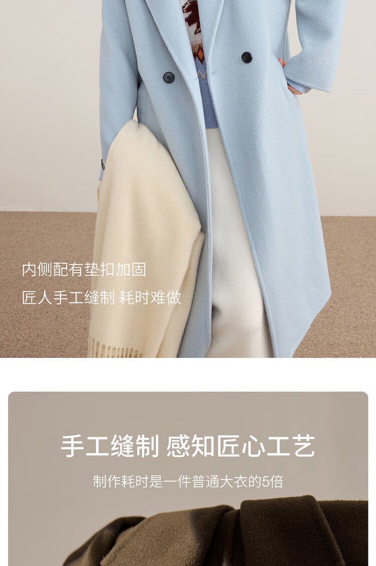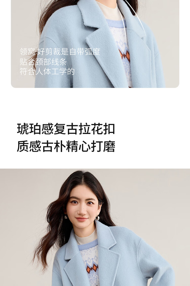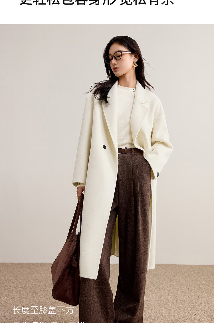 尚都比拉纯羊毛保暖毛呢大衣女冬季立裁西装领中长款外套小个子通勤大衣