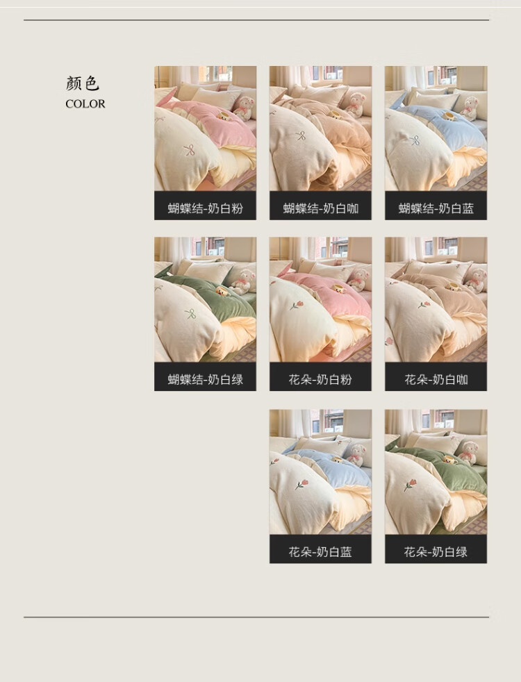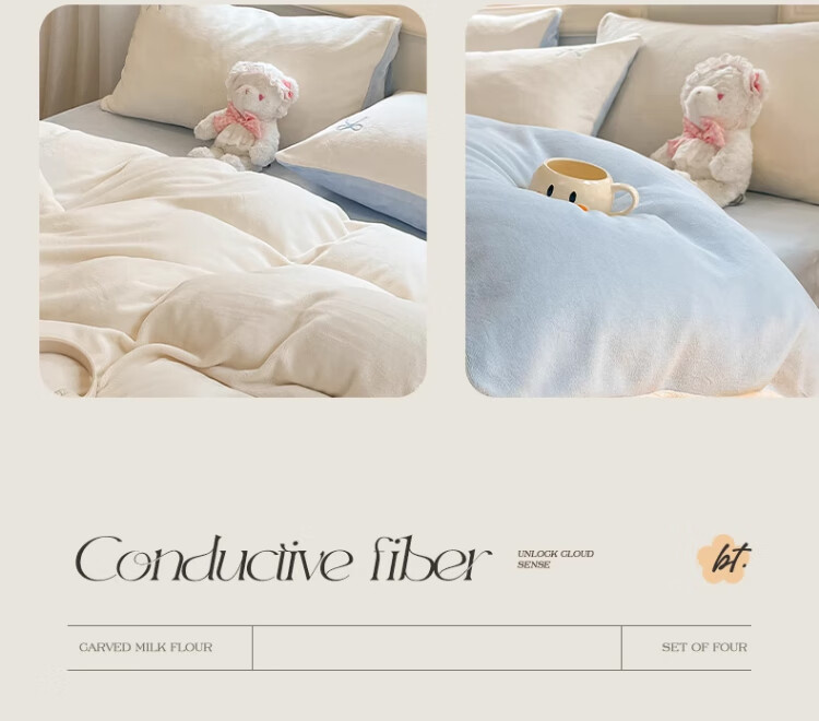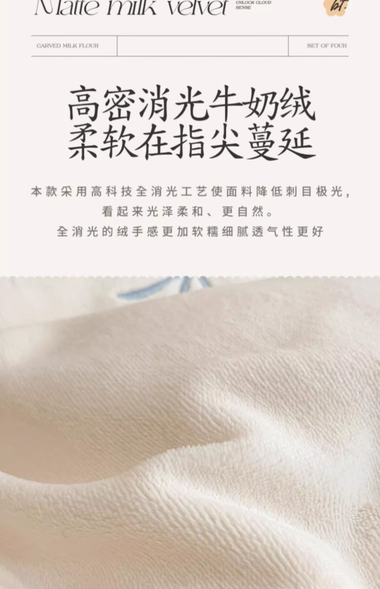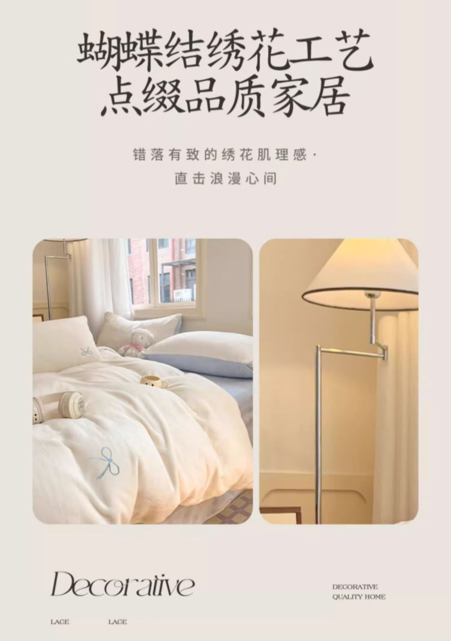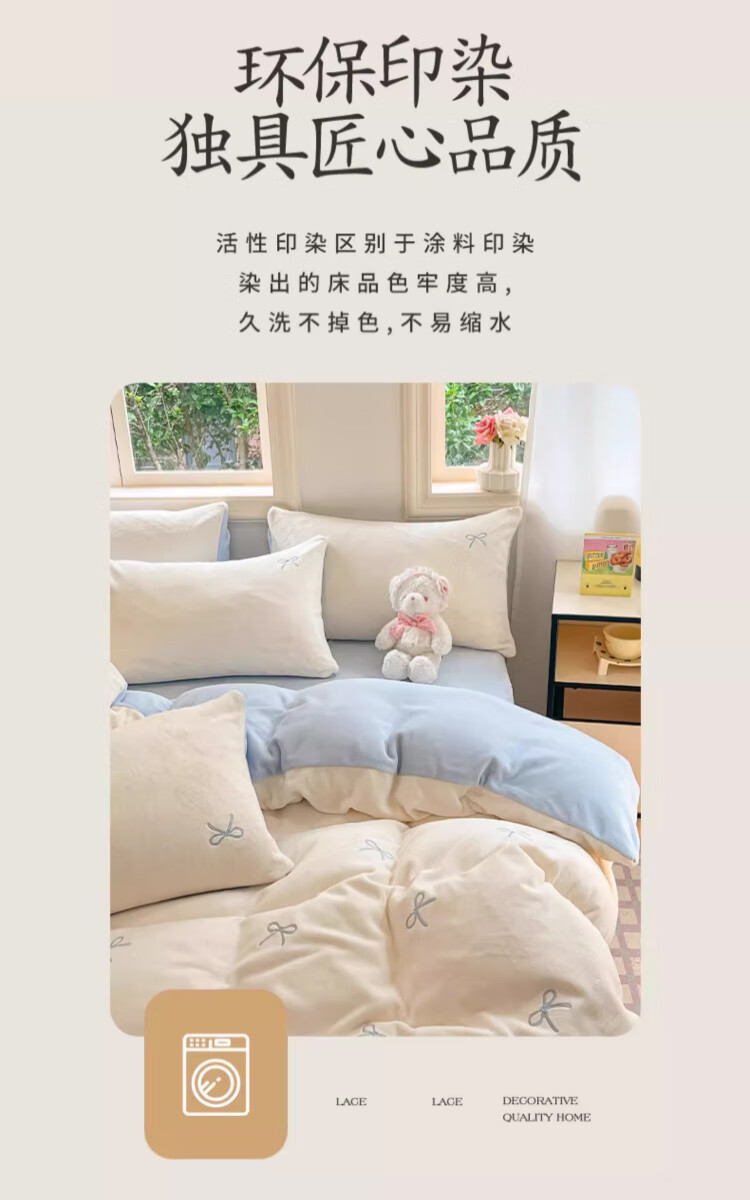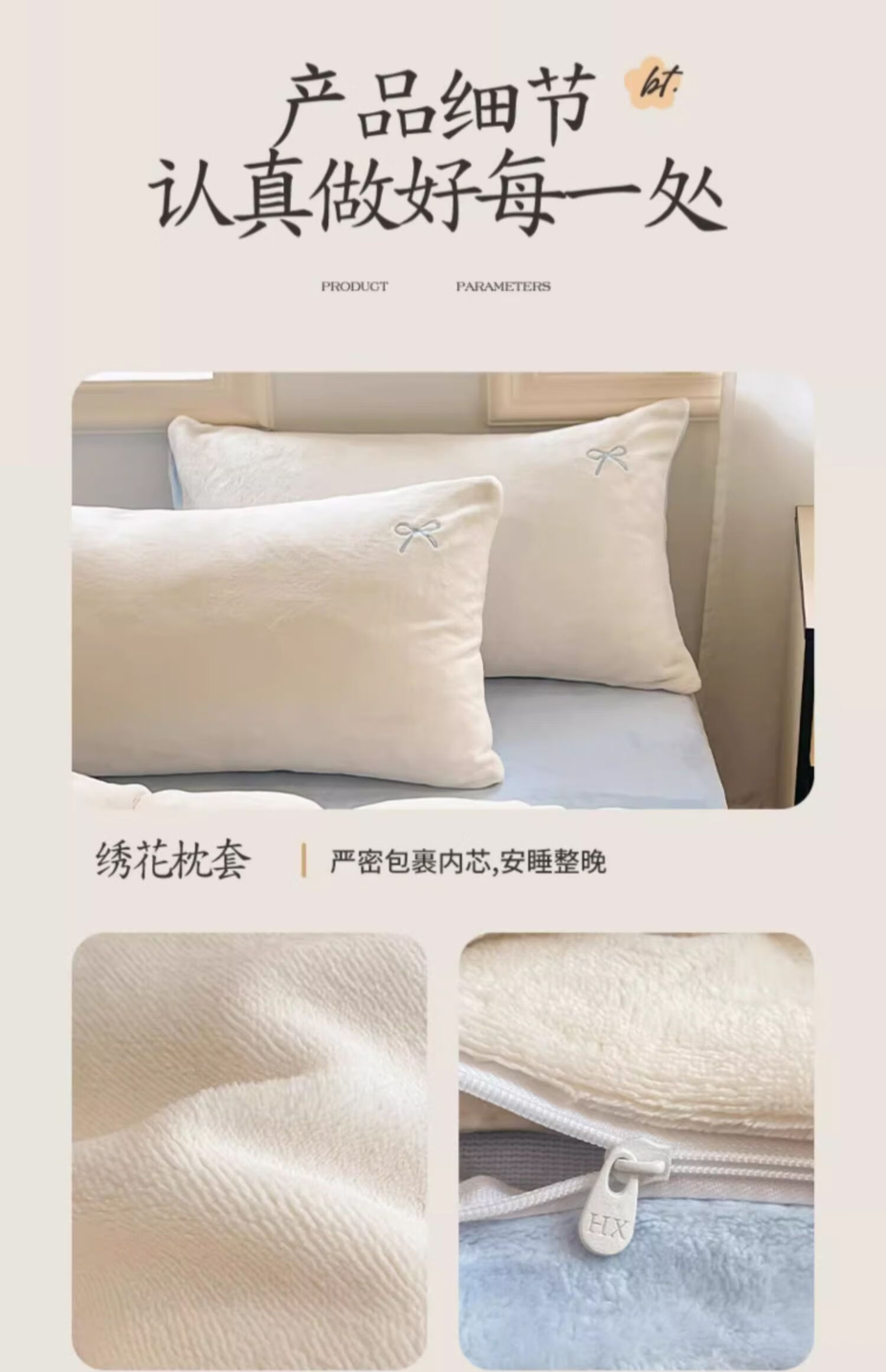 无印良品牛奶绒床上用品四件套秋冬季加厚加绒2025新款床单床笠被套三件套 蝴蝶结-奶白蓝【高克重牛奶绒】 1.5/1.8m 床单款 四件/被套200x230