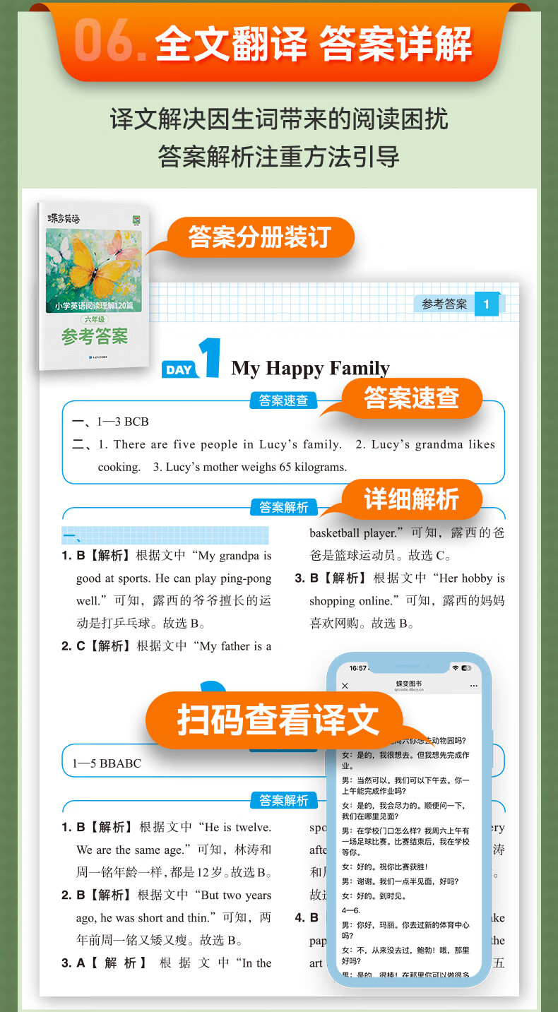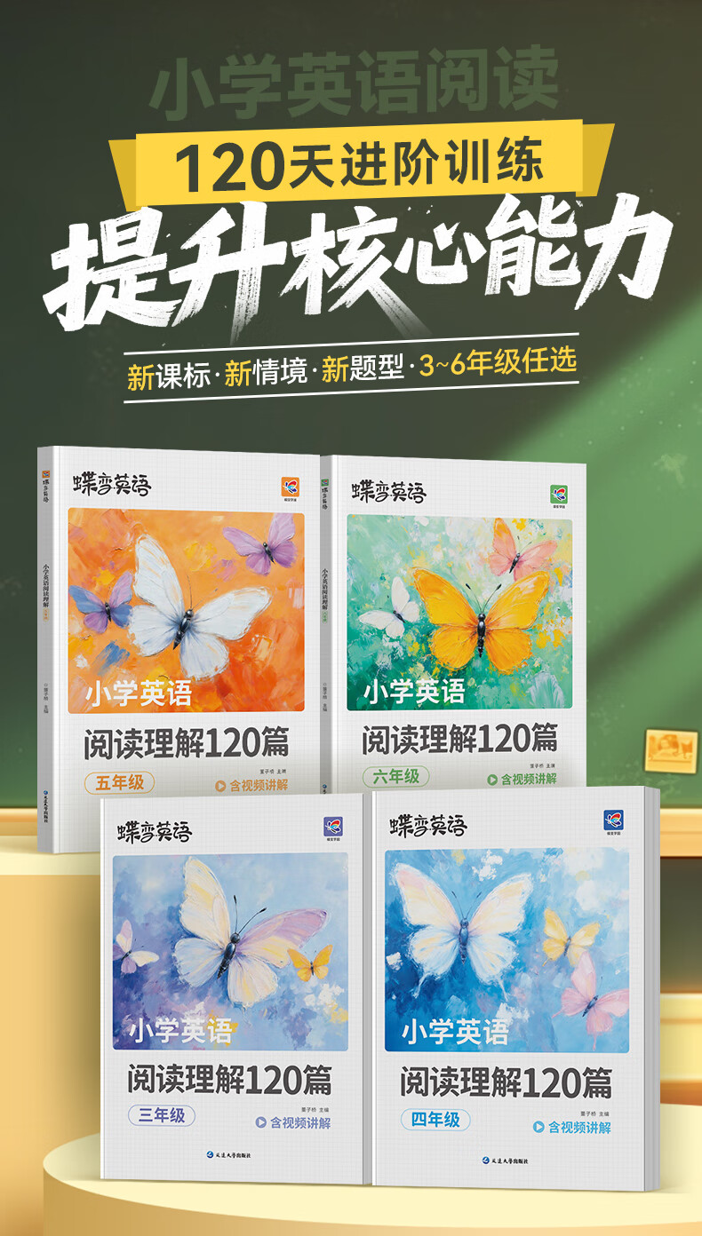 蝶变学园小学英语阅读理解训练100篇+20篇真题阅读培优 三四五六年级英语阅读理解120篇专项训练 蝶变英语3-6年级英语阅读训练新课标教材课外阅读练习册 全国通用 【六年级英语】阅读训练120篇