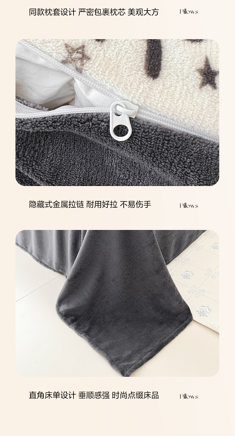 DEATKN德国牛奶绒枕套一对装珊瑚绒枕巾枕头套秋冬48cm74cm棉枕芯套单个 双面刺绣绒-暗夜灰【一对装】 48cmX74cm