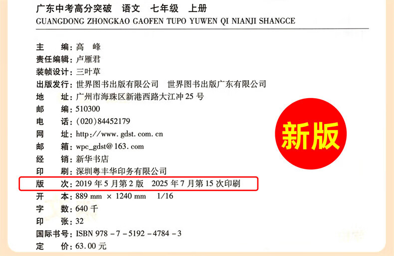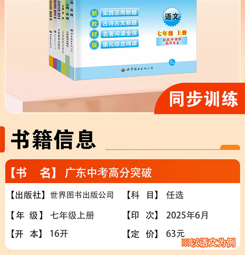 2025秋广东中考高分突破七年级上册 语文数学英语物理道法历史生物地理人教版北师版可选 暑假预习初一教材同步练习册 【语文】人教版