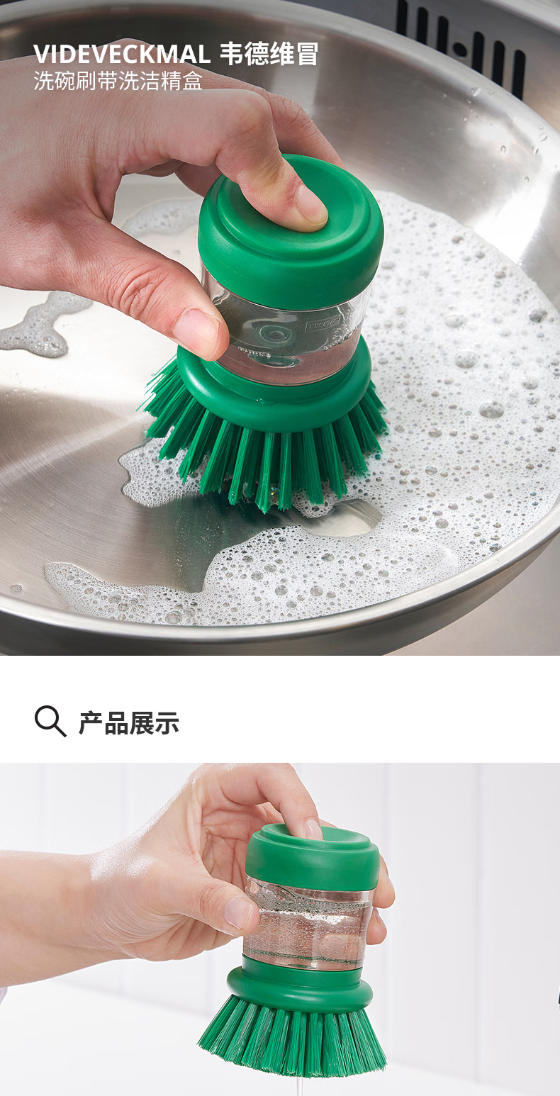宜家(IKEA)顺手买一件VIDEVECKMAL日用杂货洗碗刷带洗洁精盒生活日用 洗碗刷带洗洁精盒亮绿色