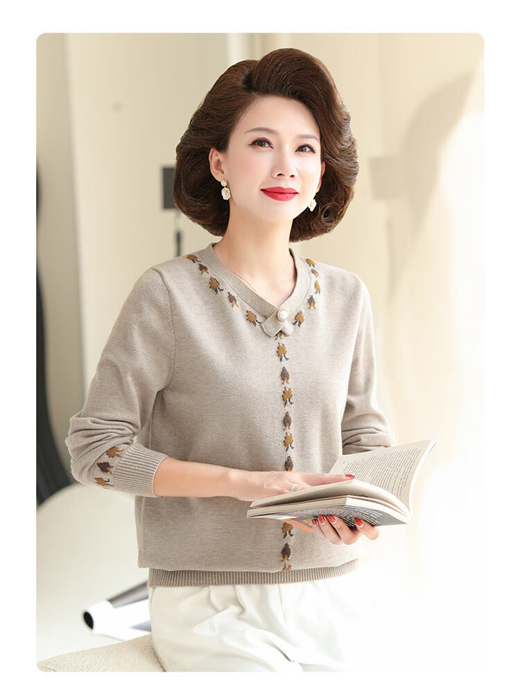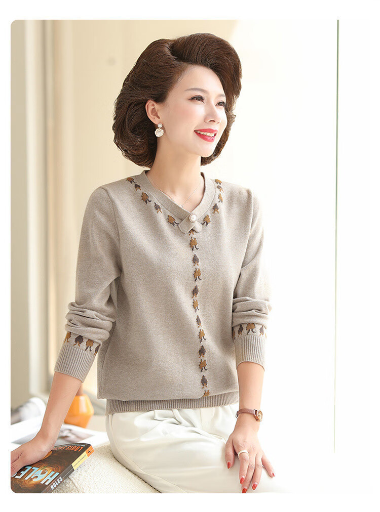 简狐妈妈装秋装针织衫2025新款洋气中老年女装春秋季时尚气质减龄小衫