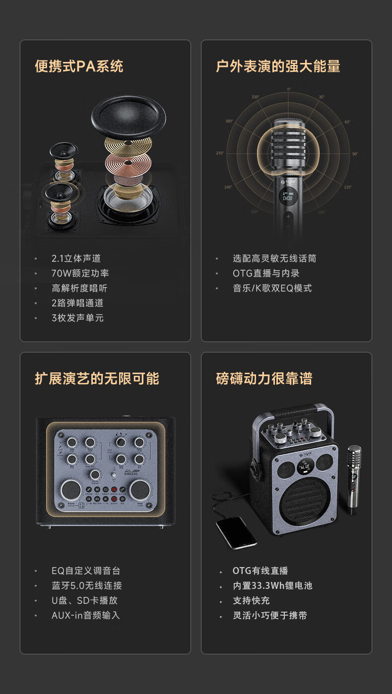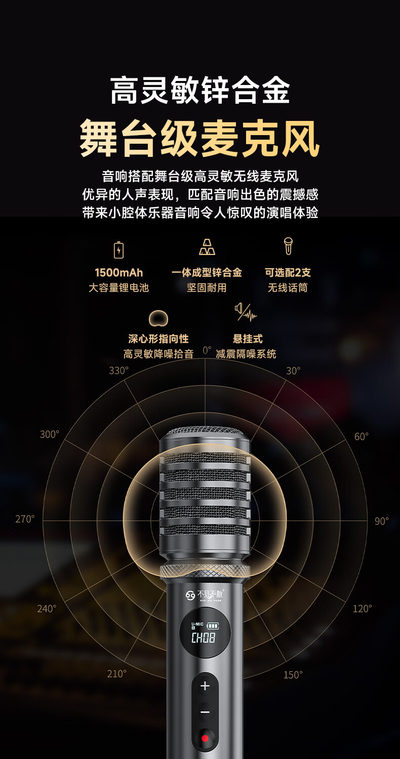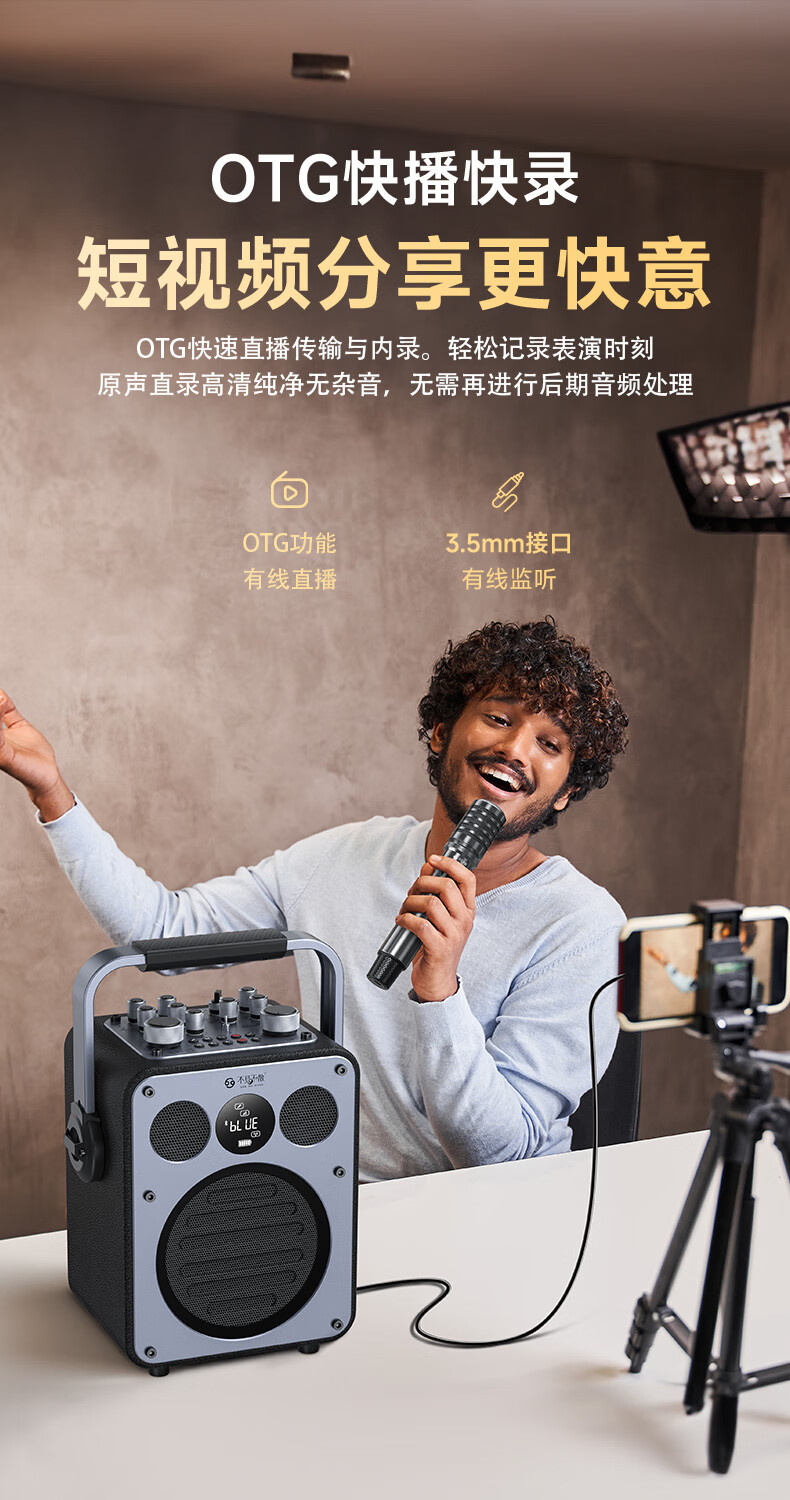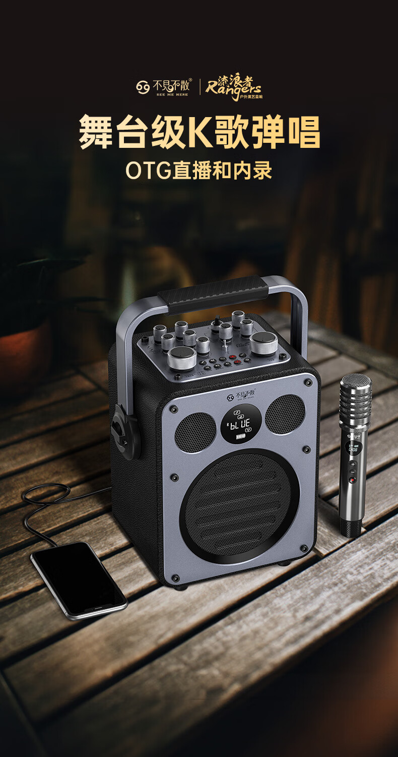 不见不散流浪者D5户外K歌直播音响【帮下歌】超重低音炮手提便携式麦克风一体家庭KTV广场舞蓝牙音箱高音质 波尔红| 70W大功率+单麦版+32G卡