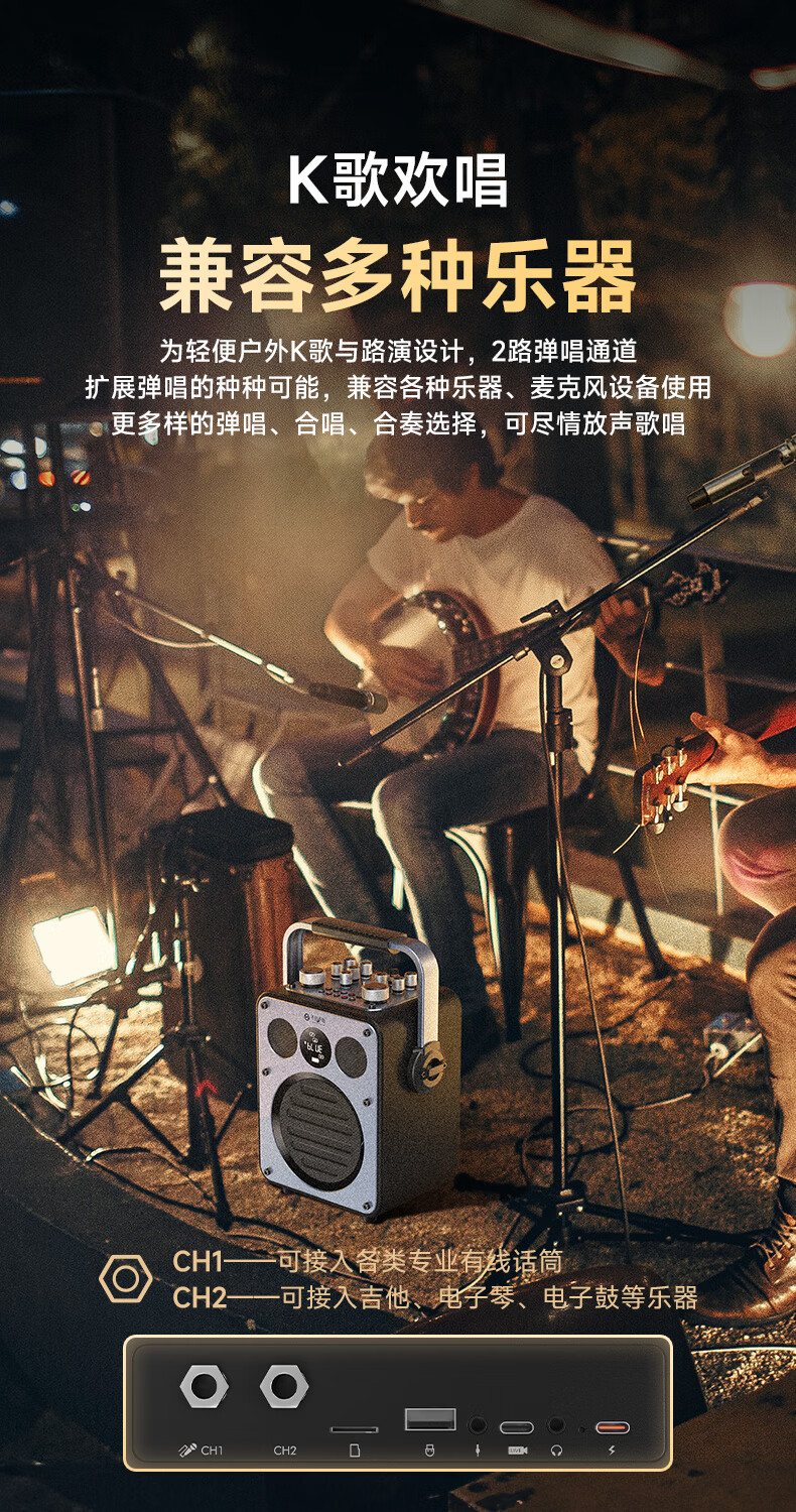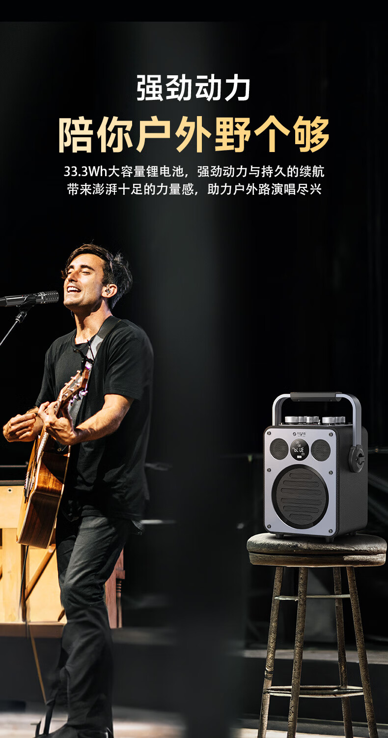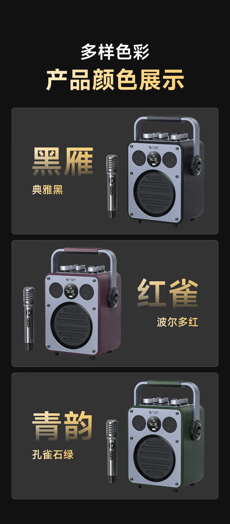 不见不散流浪者D5户外K歌直播音响【帮下歌】超重低音炮手提便携式麦克风一体家庭KTV广场舞蓝牙音箱高音质 波尔红| 70W大功率+单麦版+32G卡
