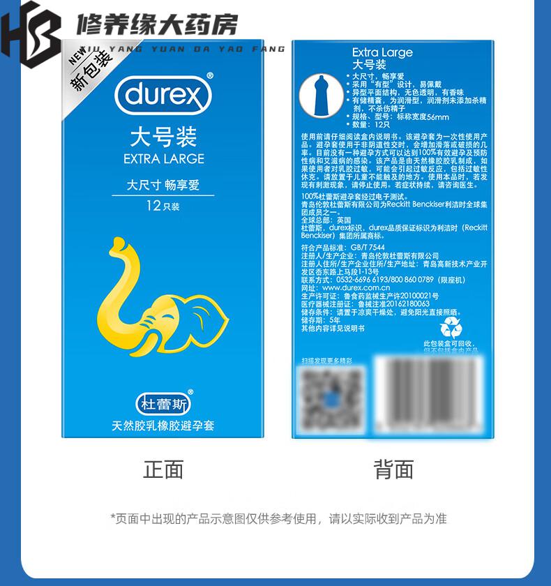 杜蕾斯(durex) xxl大号套54型55套男56mm58加大码60特65 颜色 颜 光面大号共12大号装
