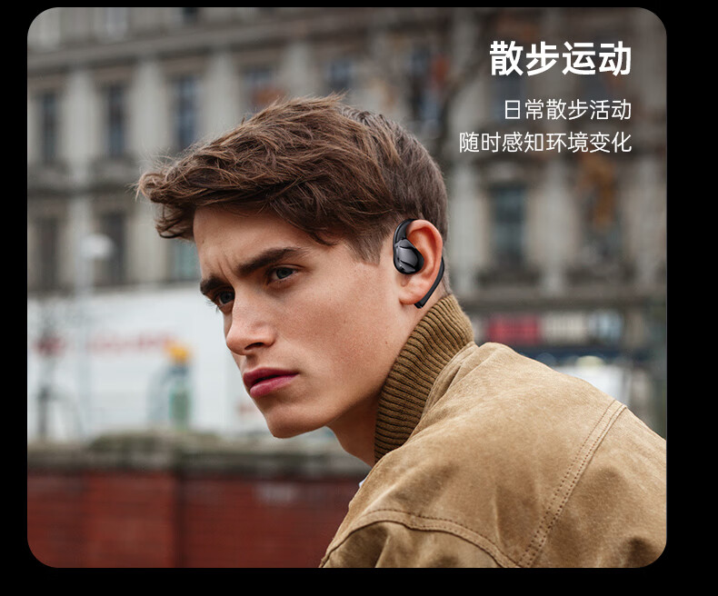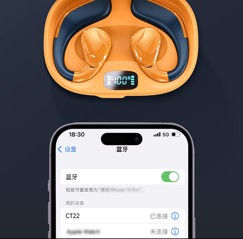 艾米尼蓝牙耳机开放式挂耳式空气传导真无线不入耳舒适运动跑步骑行健身超长续航手机平板笔记本电脑通用 霞光橙
