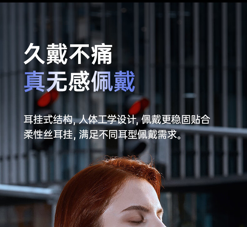 唯立德蓝牙耳机挂耳式运动跑步真无线入耳式音乐骑行舒适佩戴超长续航通话降噪防水 樱花粉丨久戴不痛-双麦降噪
