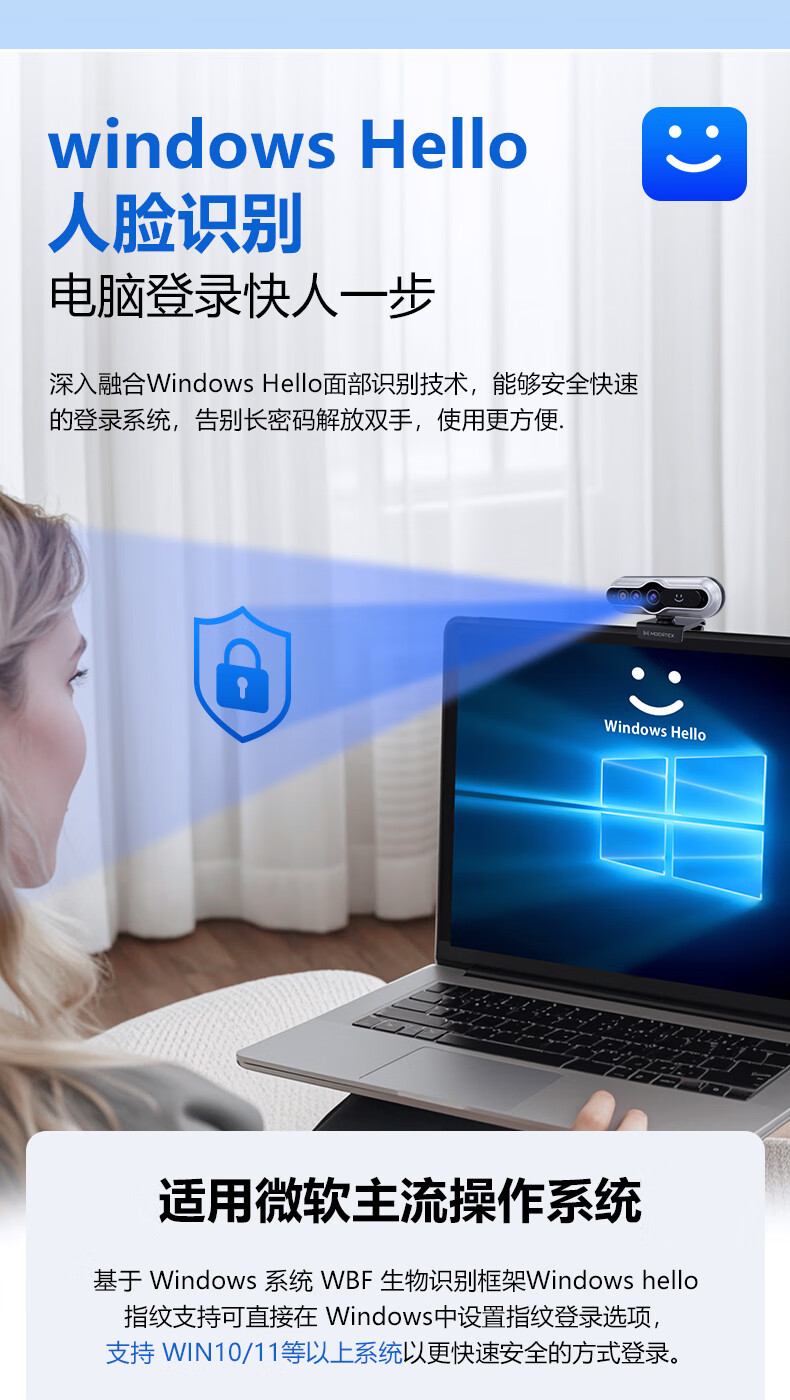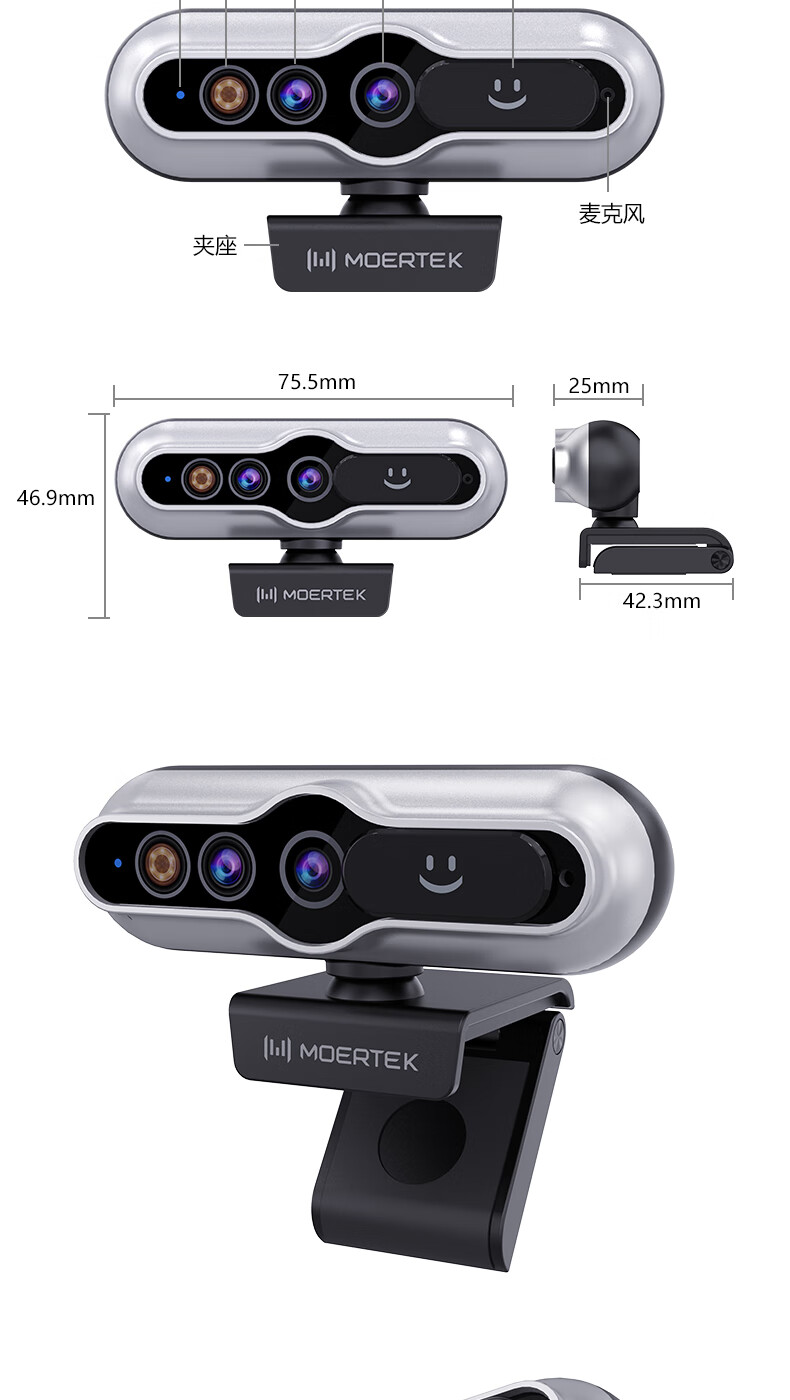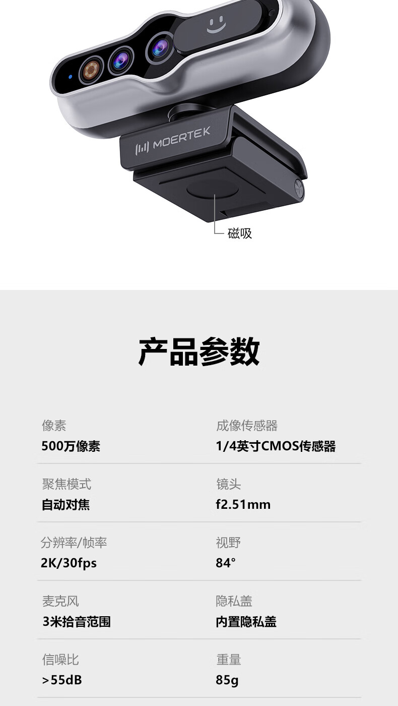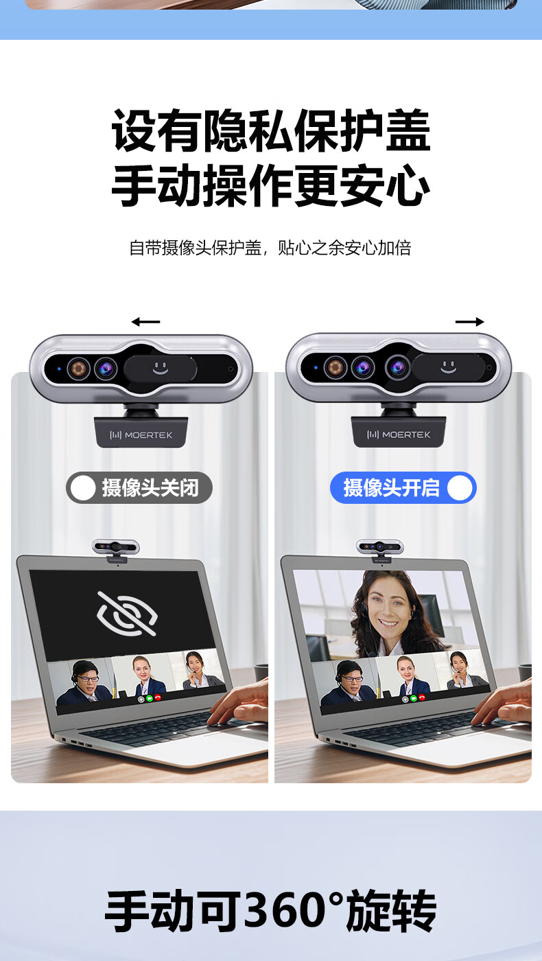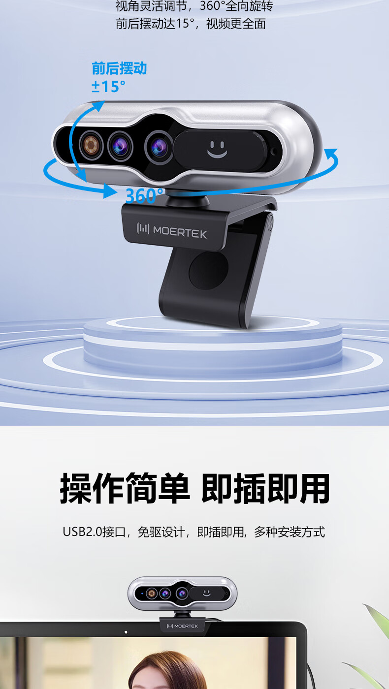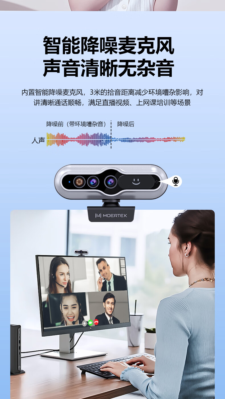 Moertek2K超清Windows Hello人脸识别电脑摄像头直播设备网课教学视频会议一体式台式笔记本摄像头 2K 超清*人脸识别*免驱动*即插即用