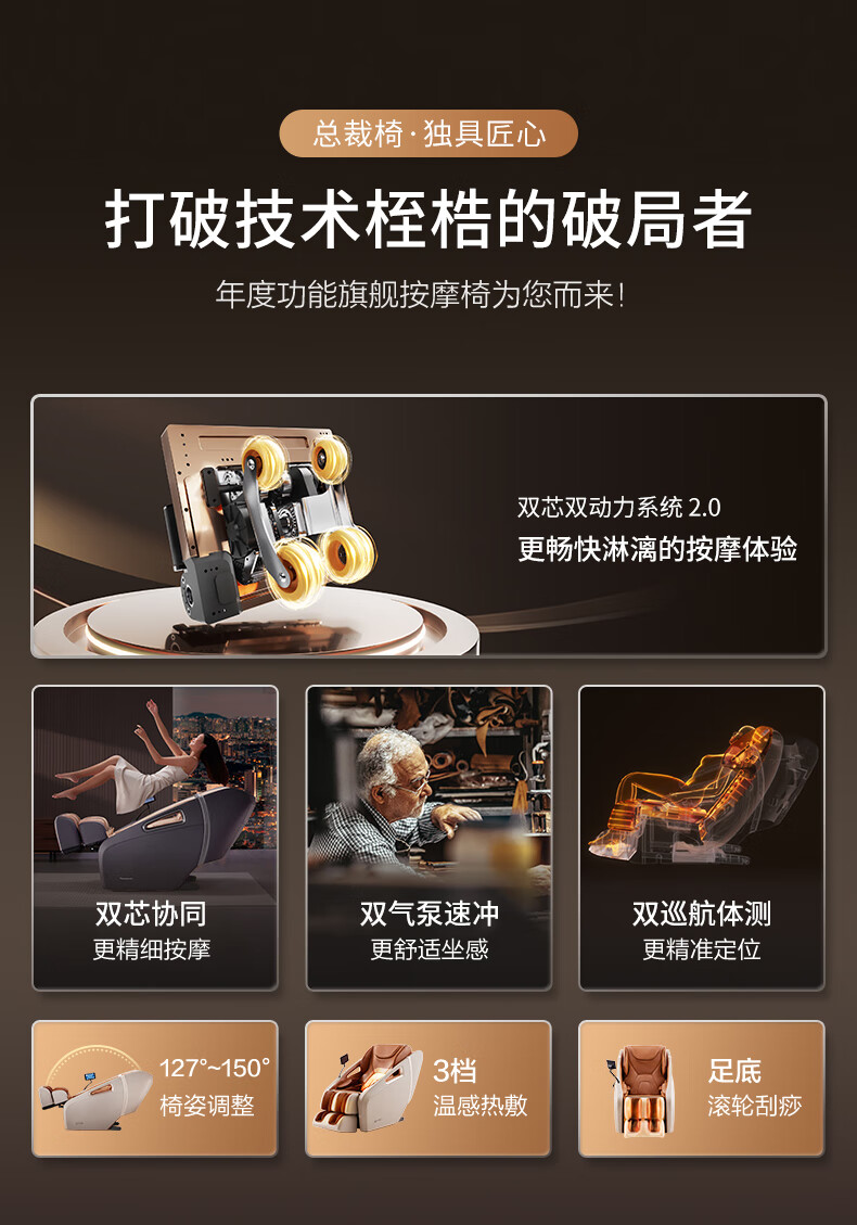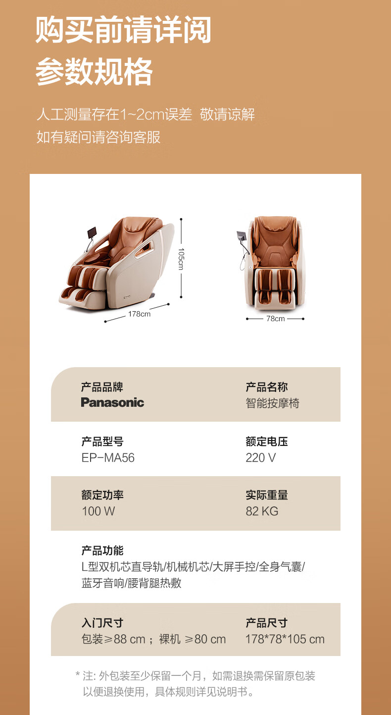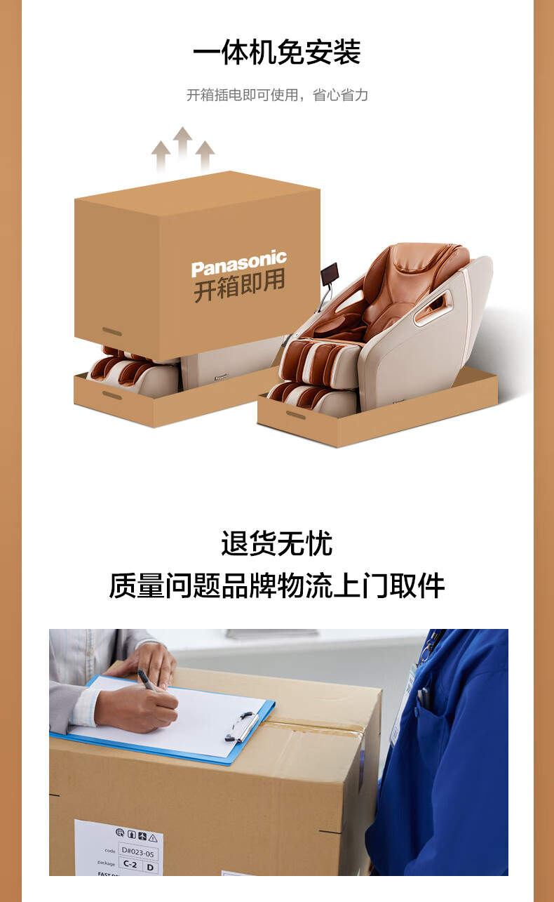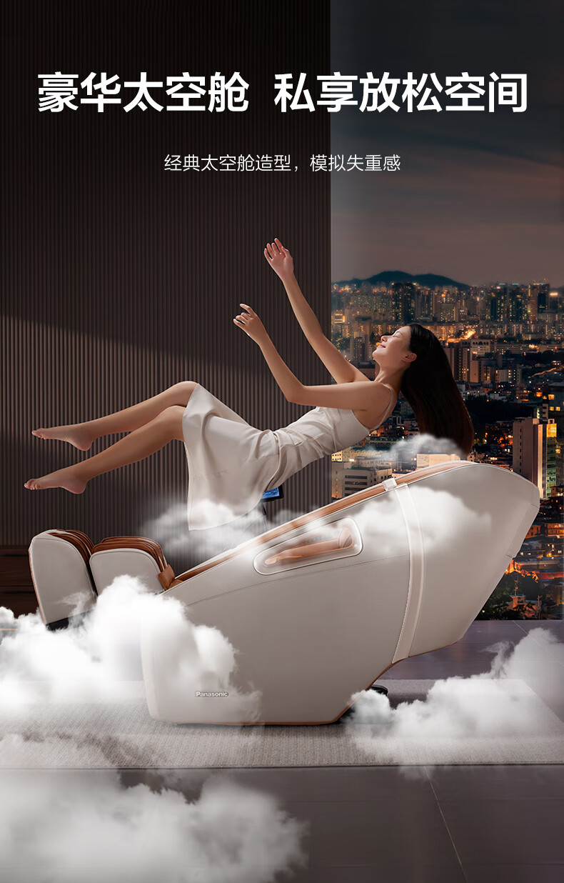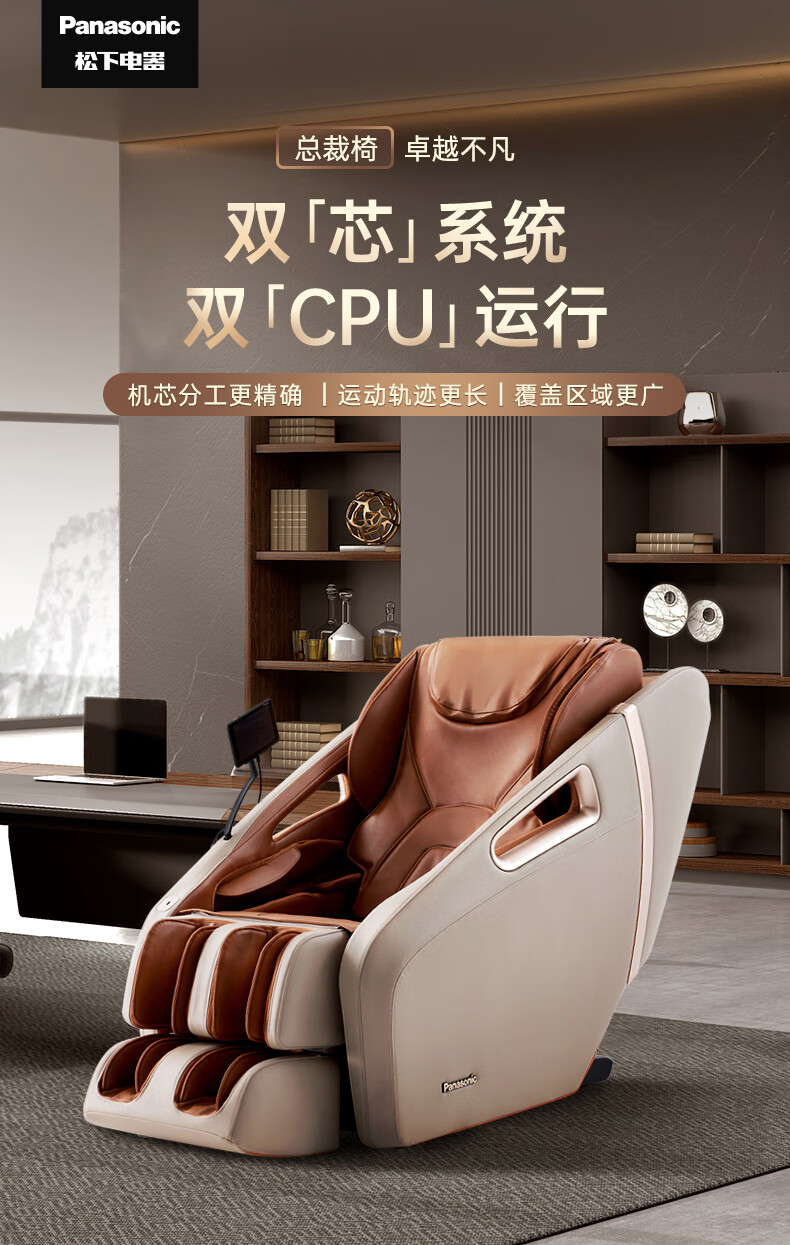松下【政府补贴】按摩椅家用太空豪华舱全身多功能4D双机芯新款电动智能按摩沙发十大品牌生日礼物男女 【双机芯+双导轨+双巡航】灰棕色 MA56H