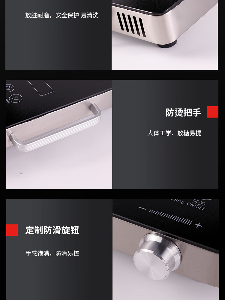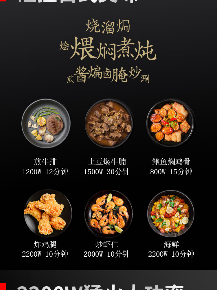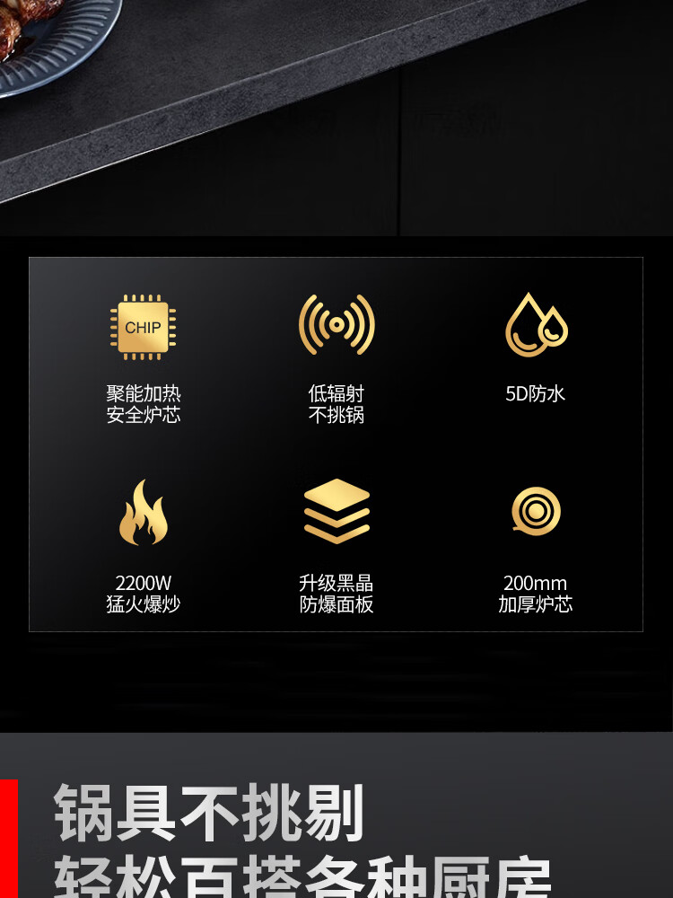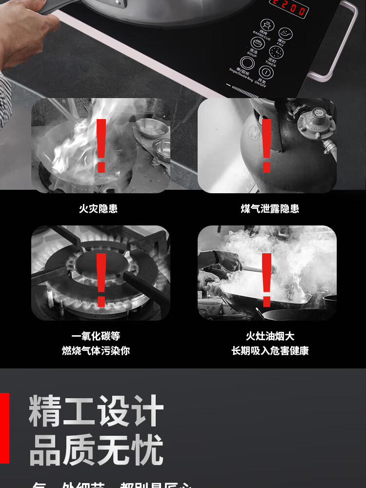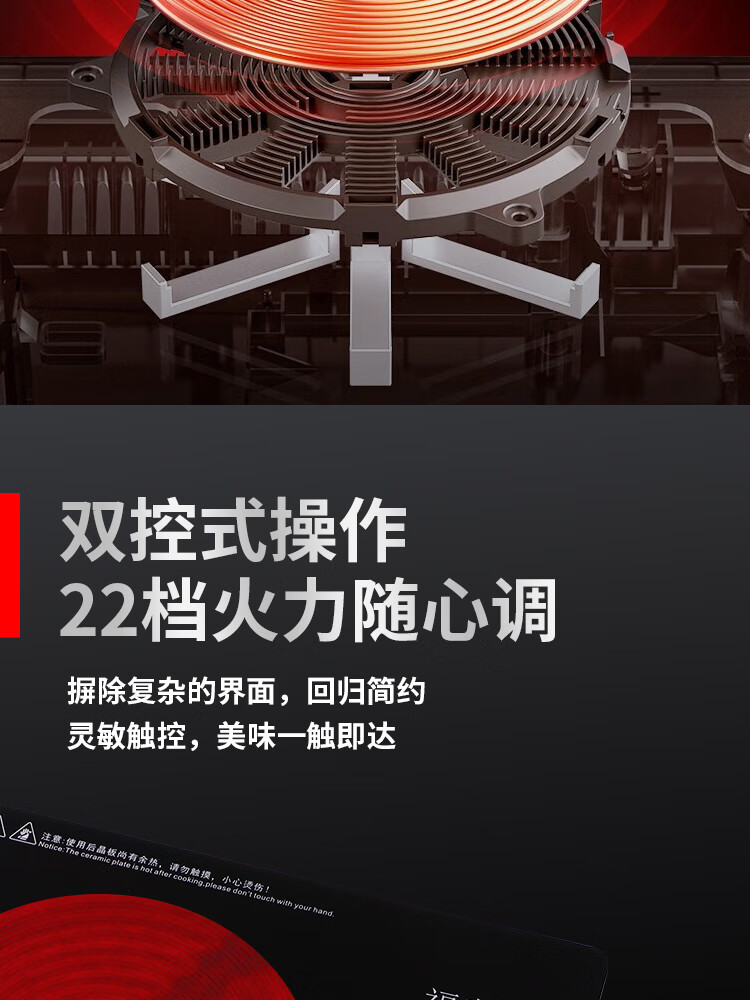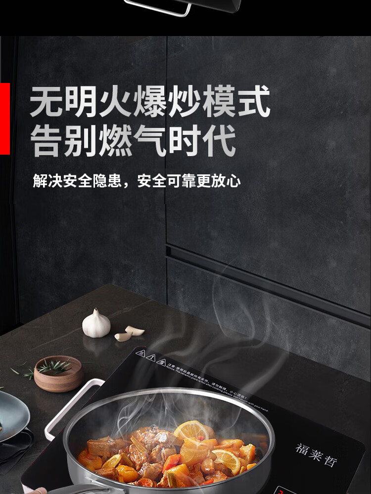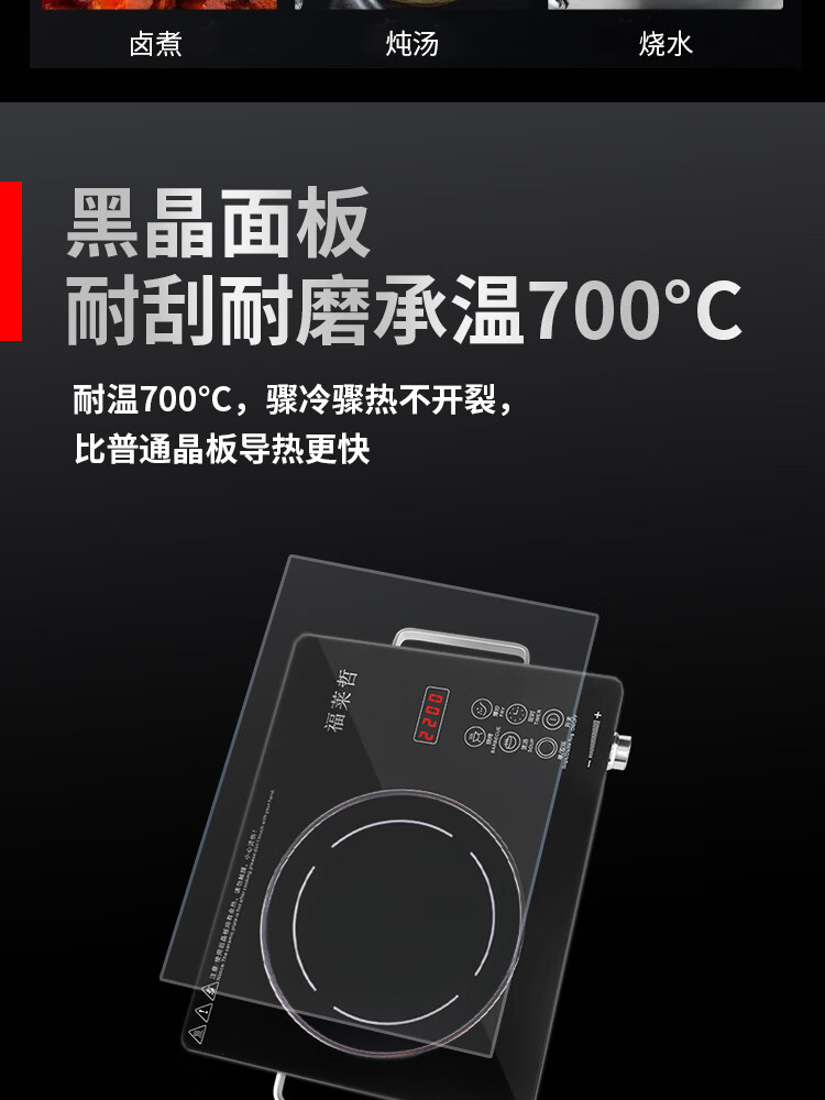 福莱哲一级能效电陶炉炒菜家用2200W大功率多功能电磁炉电陶炉旋控调节定时多档调温不挑锅具煮茶炉 黑晶磨砂面板单机
