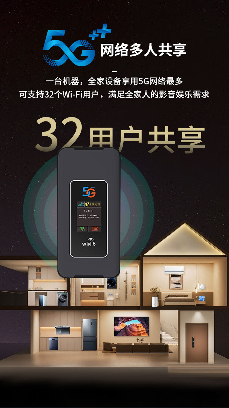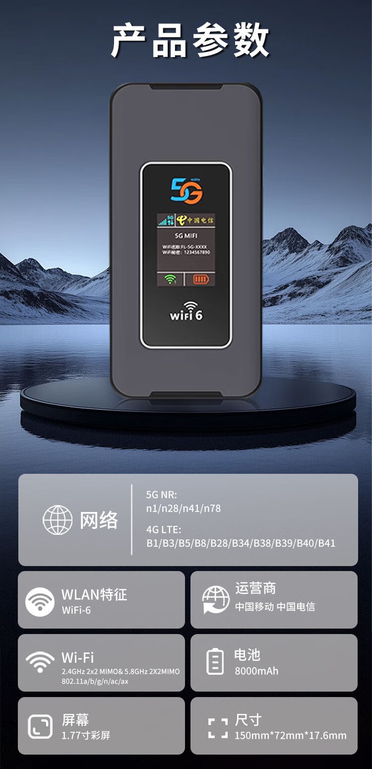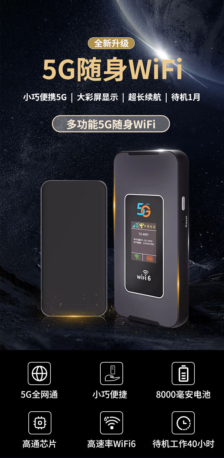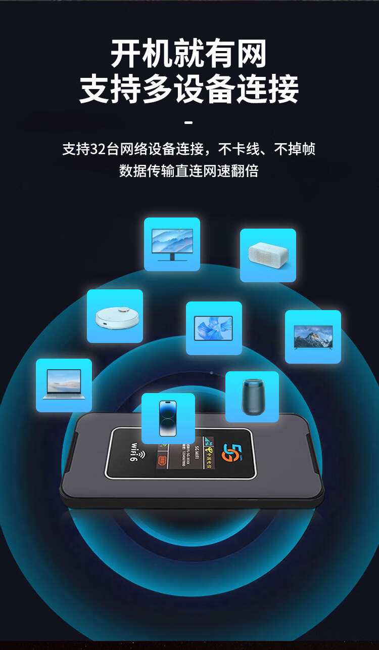 智创当下5g随身wifi移动无线免插卡cpe路由器千兆双频信号增强2025款无限流量免装宽带企业穿墙王电竞办公 满血性能WiFi6,网速狂飙不限速
