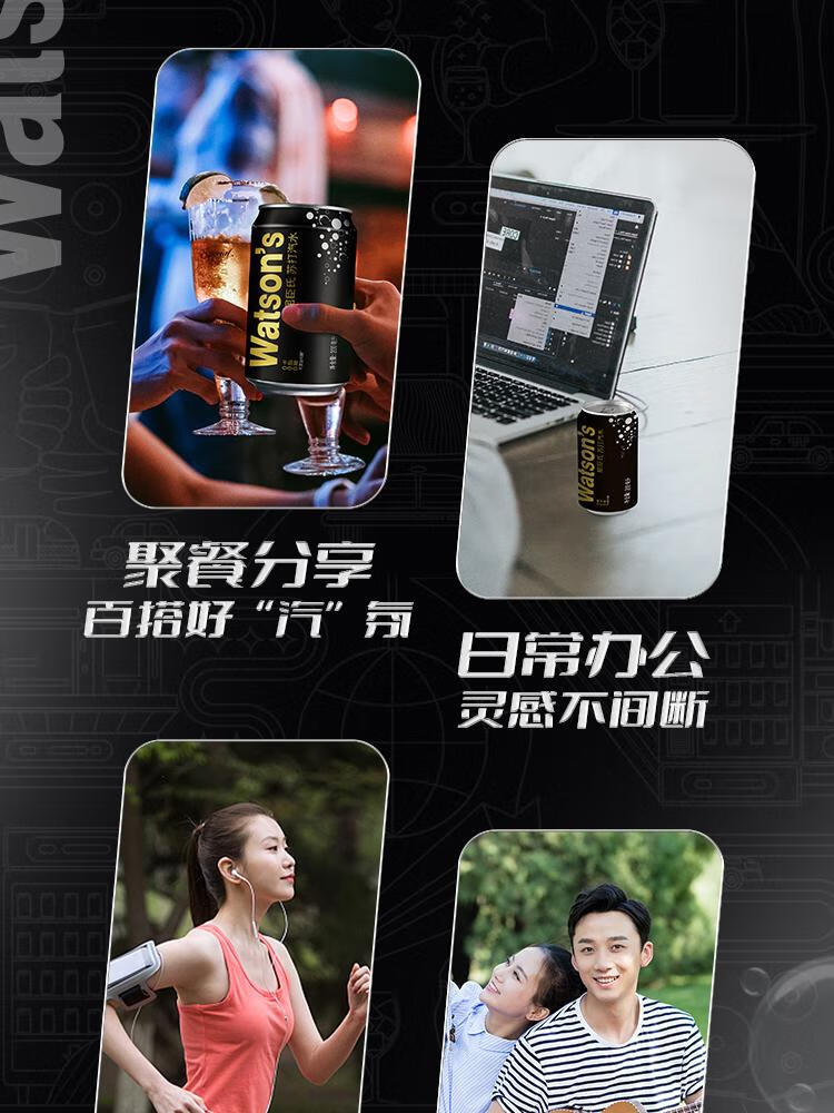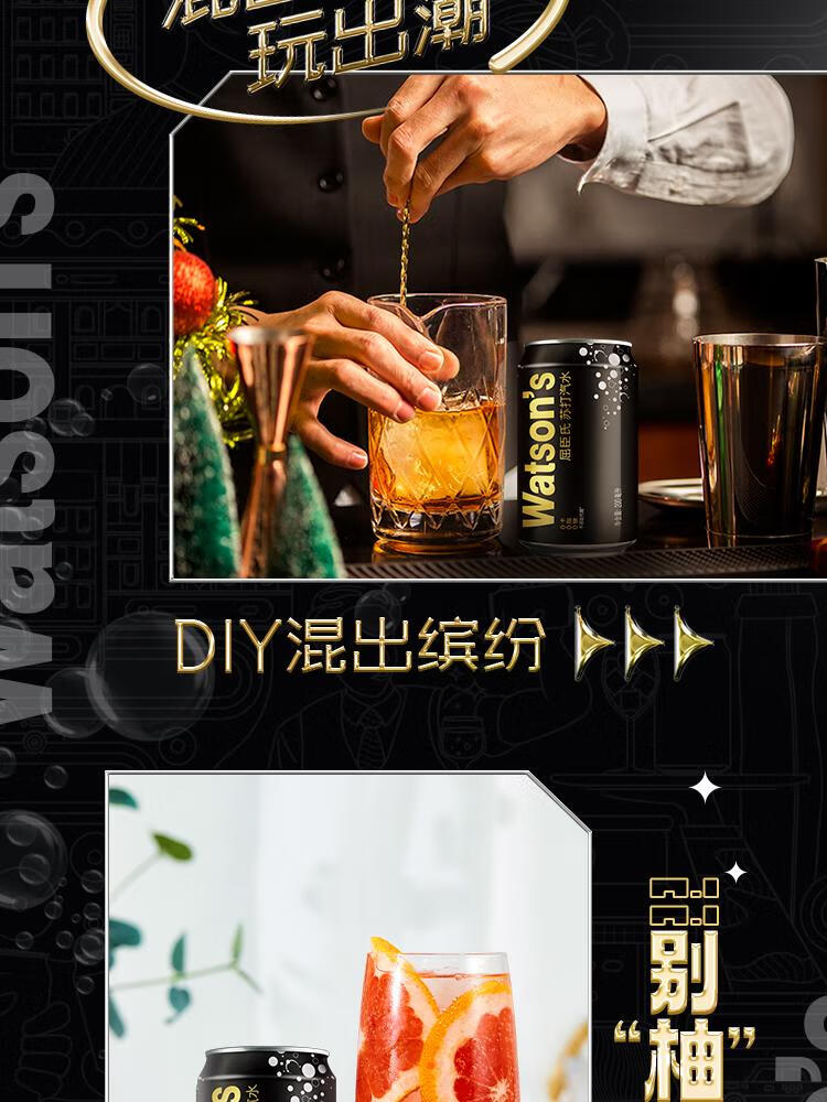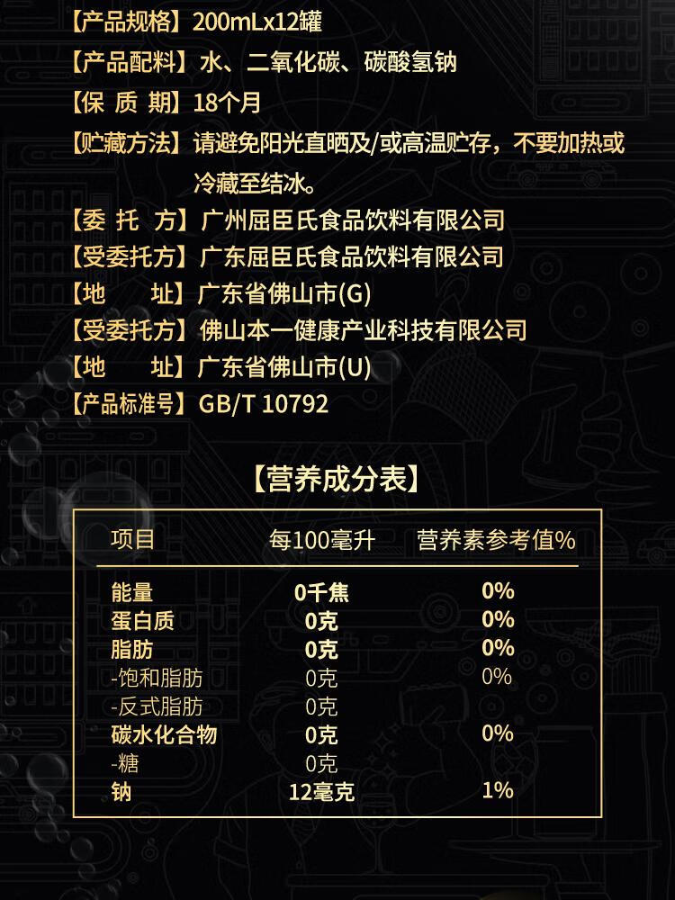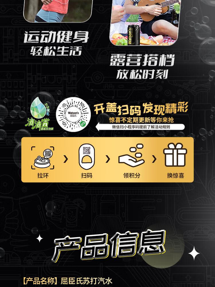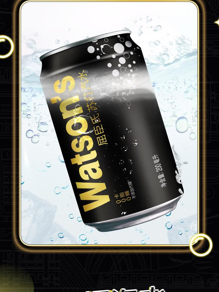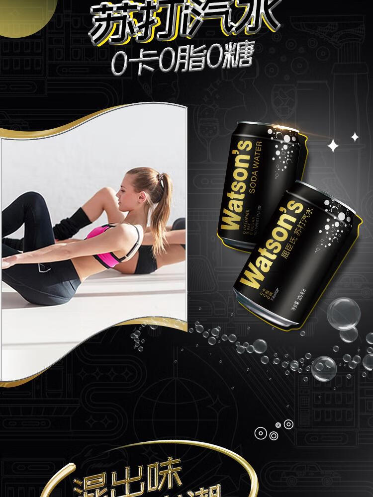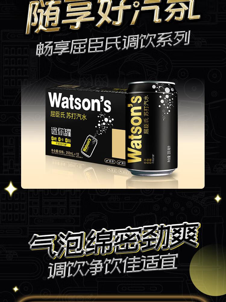 屈臣氏(Watsons)苏打汽水原味mini罐迷你0糖0卡0脂200mL*12罐整箱