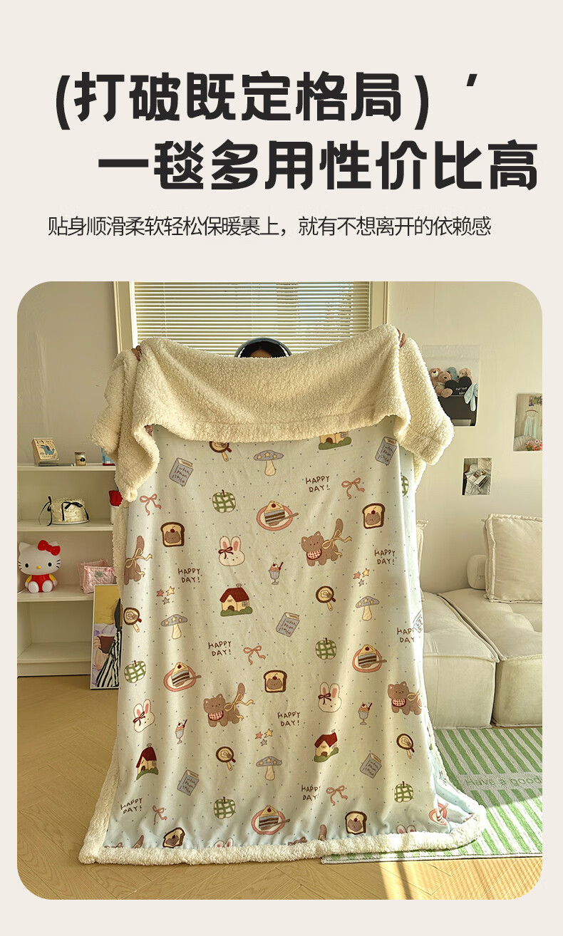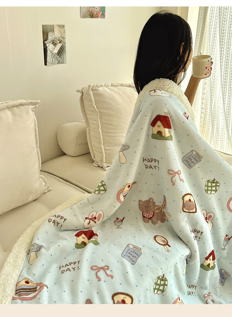 苏萱A类牛奶绒毛毯加厚办公室午睡毯子羊羔绒沙发披肩毯盖儿童小毯子 周末宠物园 儿童毯-100x150cm