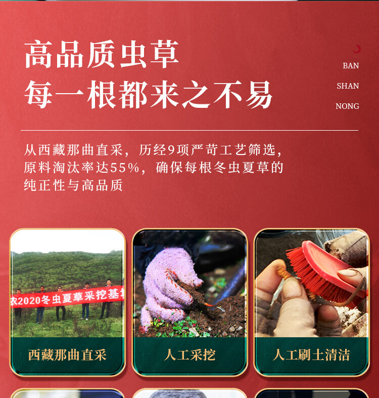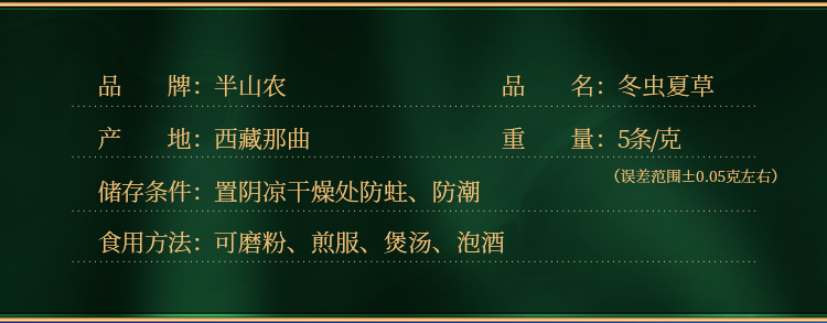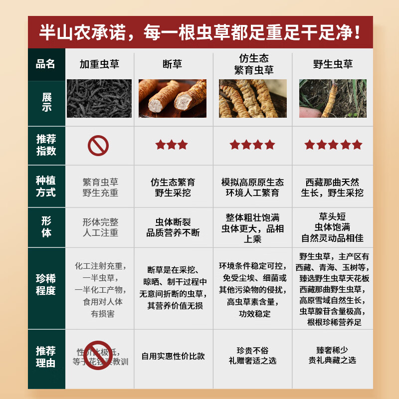 半山农【野生】冬虫夏草5条/克 1克 西藏那曲虫草 过节礼品补品性价比款