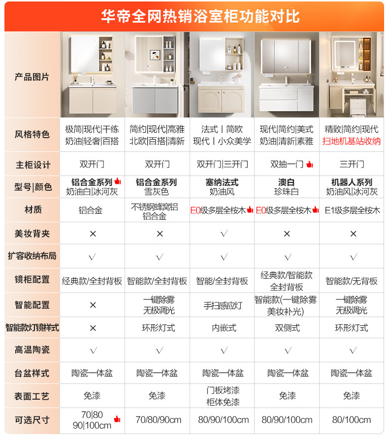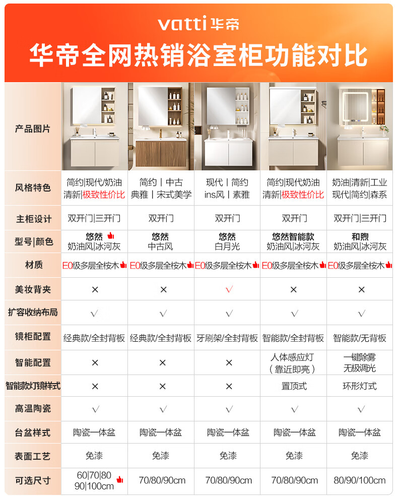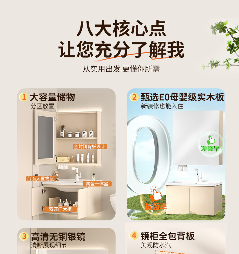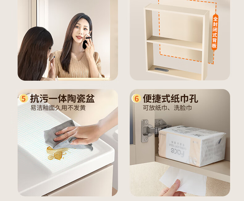 华帝(VATTI)E0级浴室柜组合陶瓷一体盆 洗手盆柜组合 卫生间洗脸盆柜洗漱台