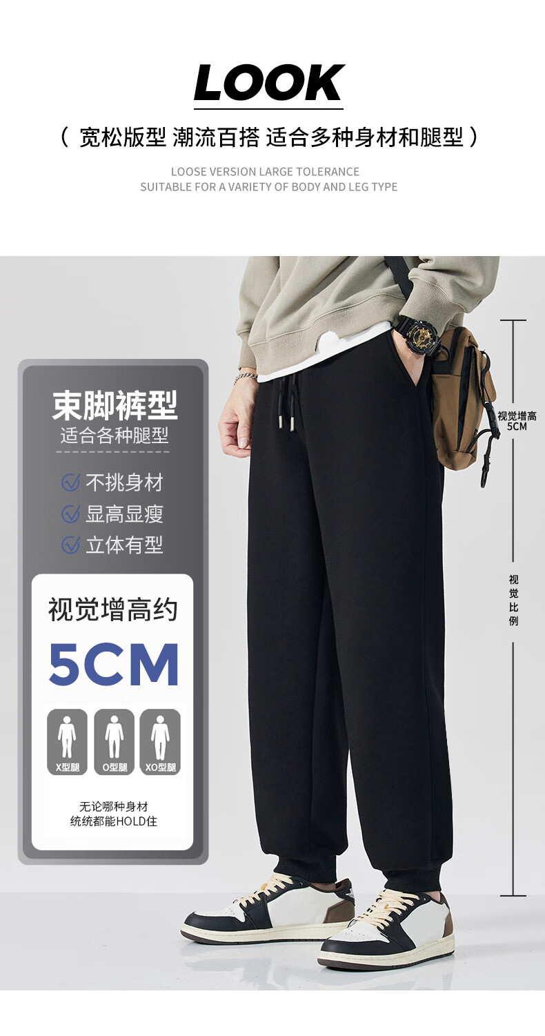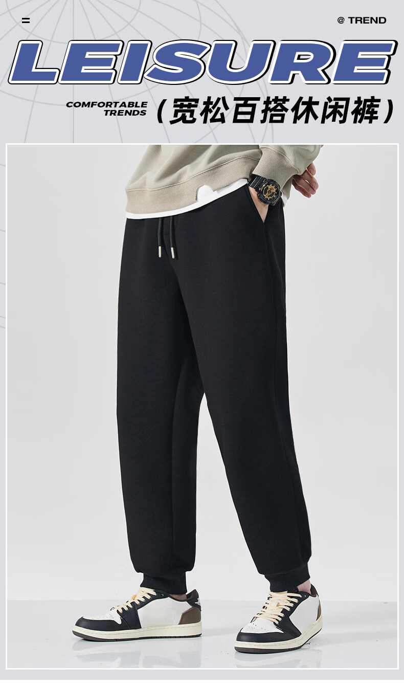 回力(Warrior)休闲裤男士春秋季重磅透气宽松裤子男新款垂感亲肤束脚针织运动裤