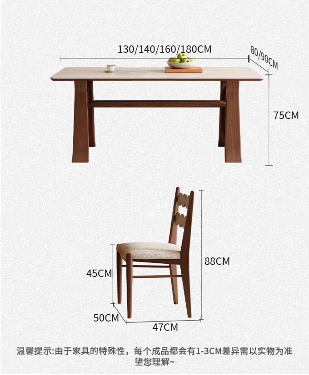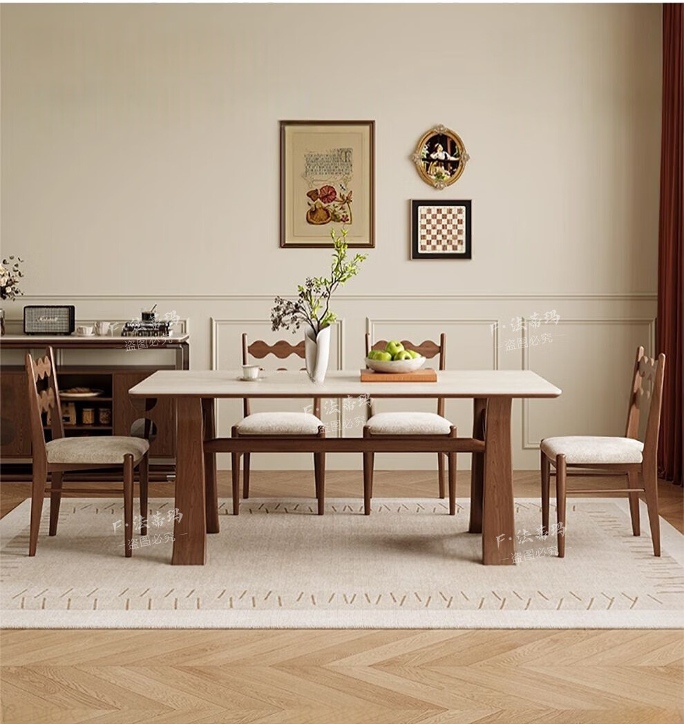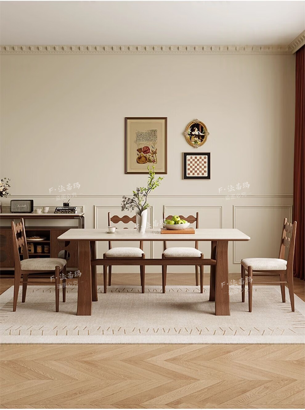 法蒂玛餐桌椅组合实木家用小户型长方形白蜡木复古风简约饭桌 1.4*0.8米餐桌 一桌四椅