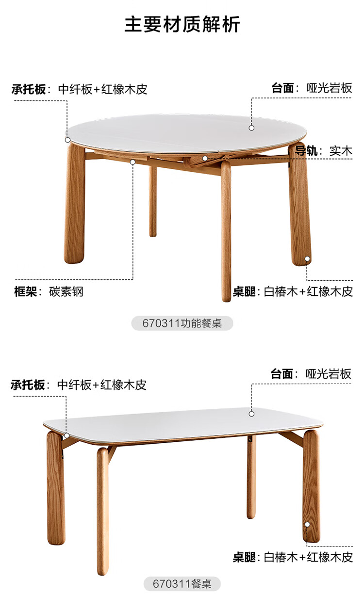 全友家居原木风岩板餐桌椅子全套可折叠实木腿吃饭桌子圆桌家用4-6人 【常规款 | 加厚岩板】桌+19椅*4