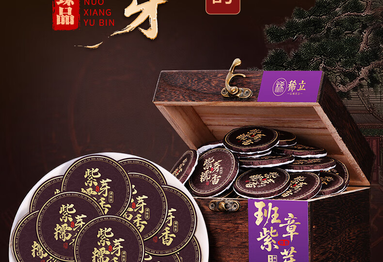 稀立老班章普洱熟茶十年陈古树紫芽茶糯香熟普小茶饼沱茶叶礼盒装500g