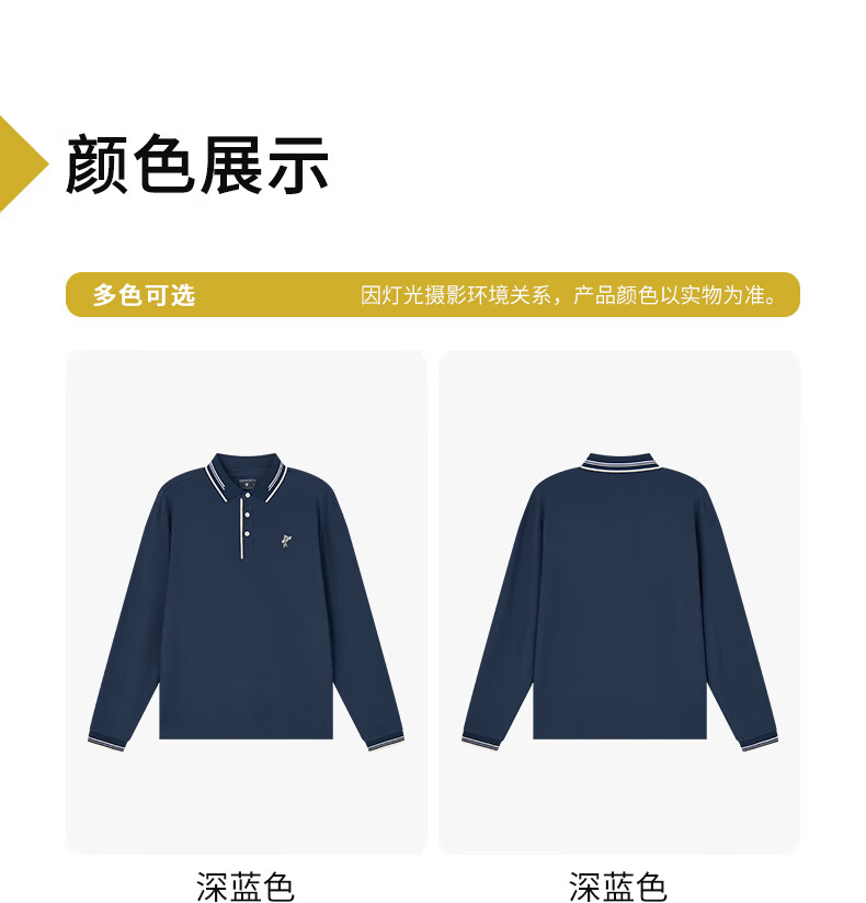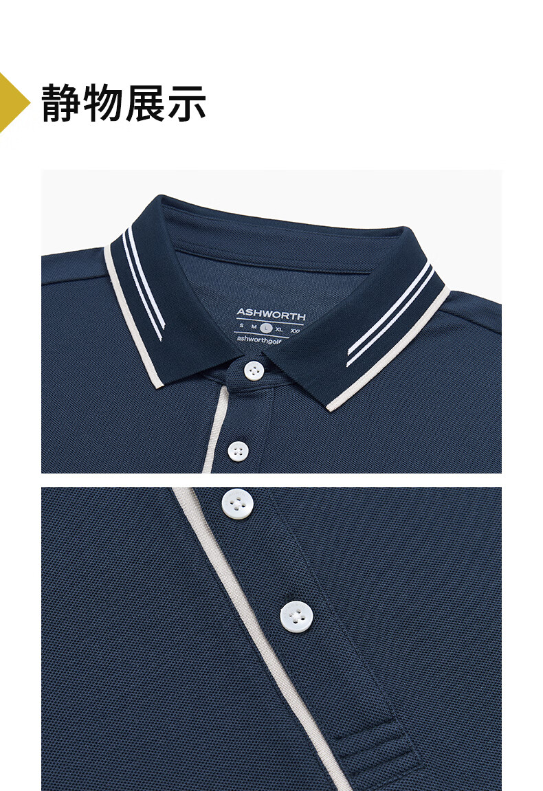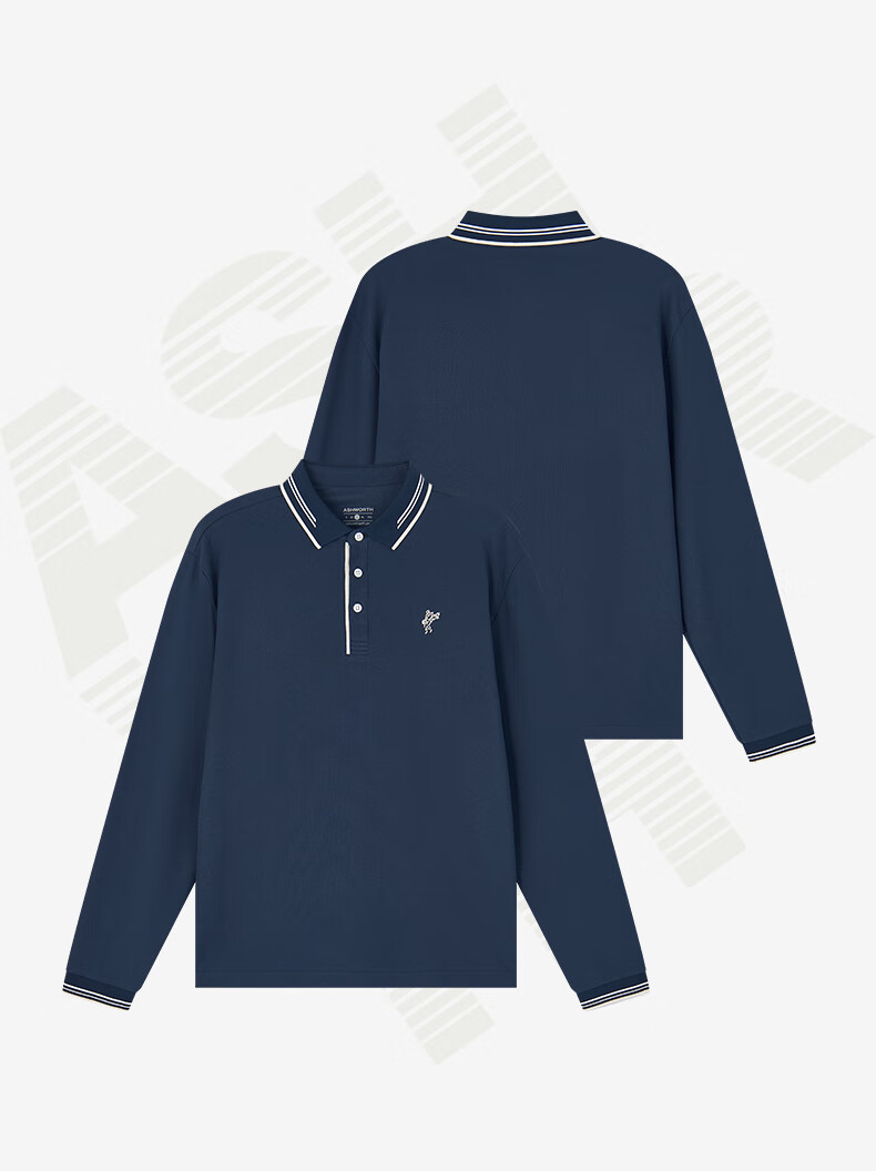 雅狮威(ASHWORTH)【抑菌棉】秋季新款翻领长袖Polo衫男针织弹力通勤户外T恤 N9-深蓝色 2XL