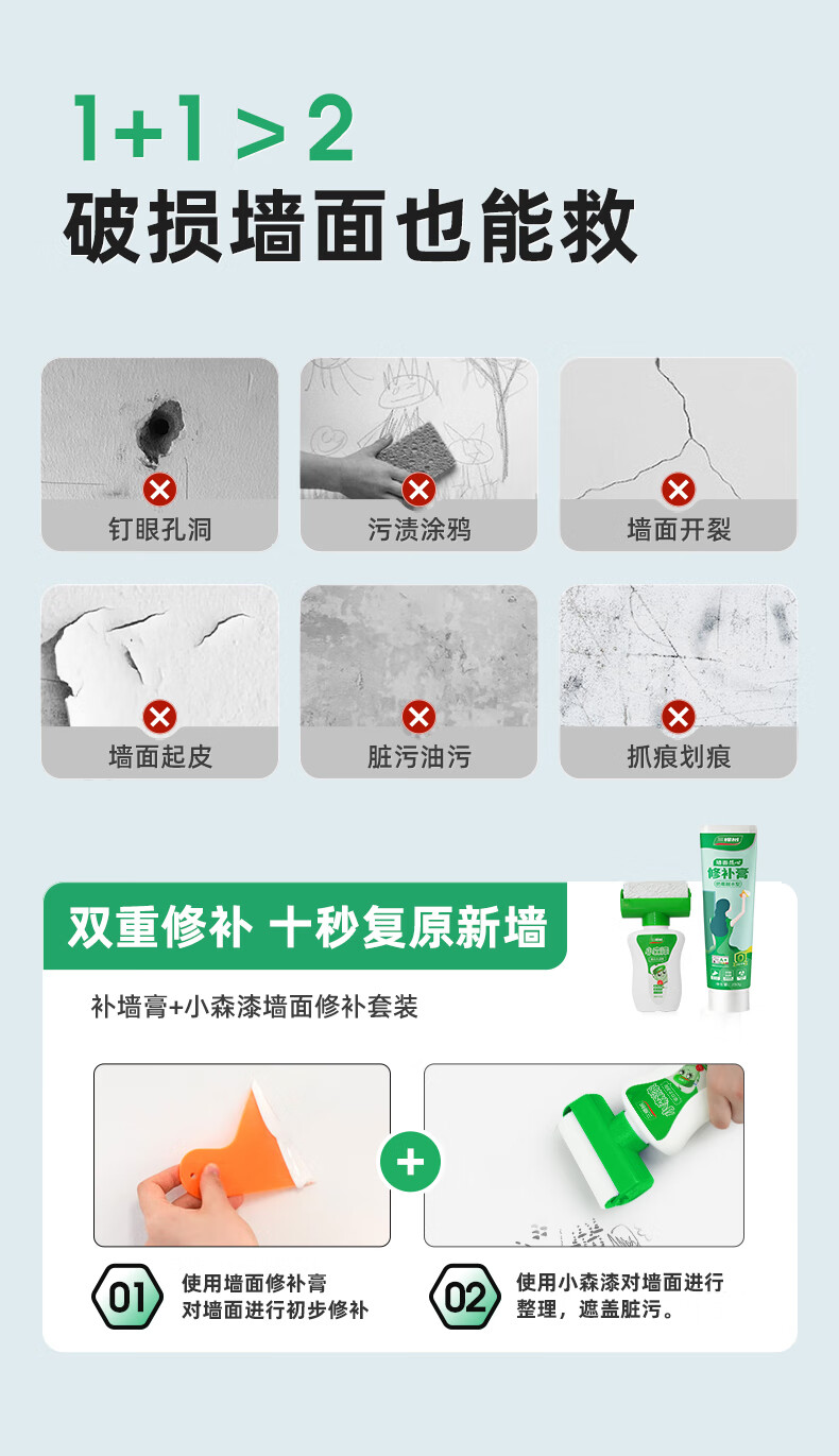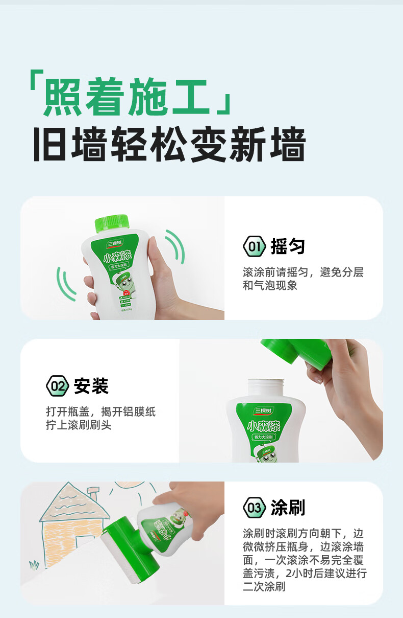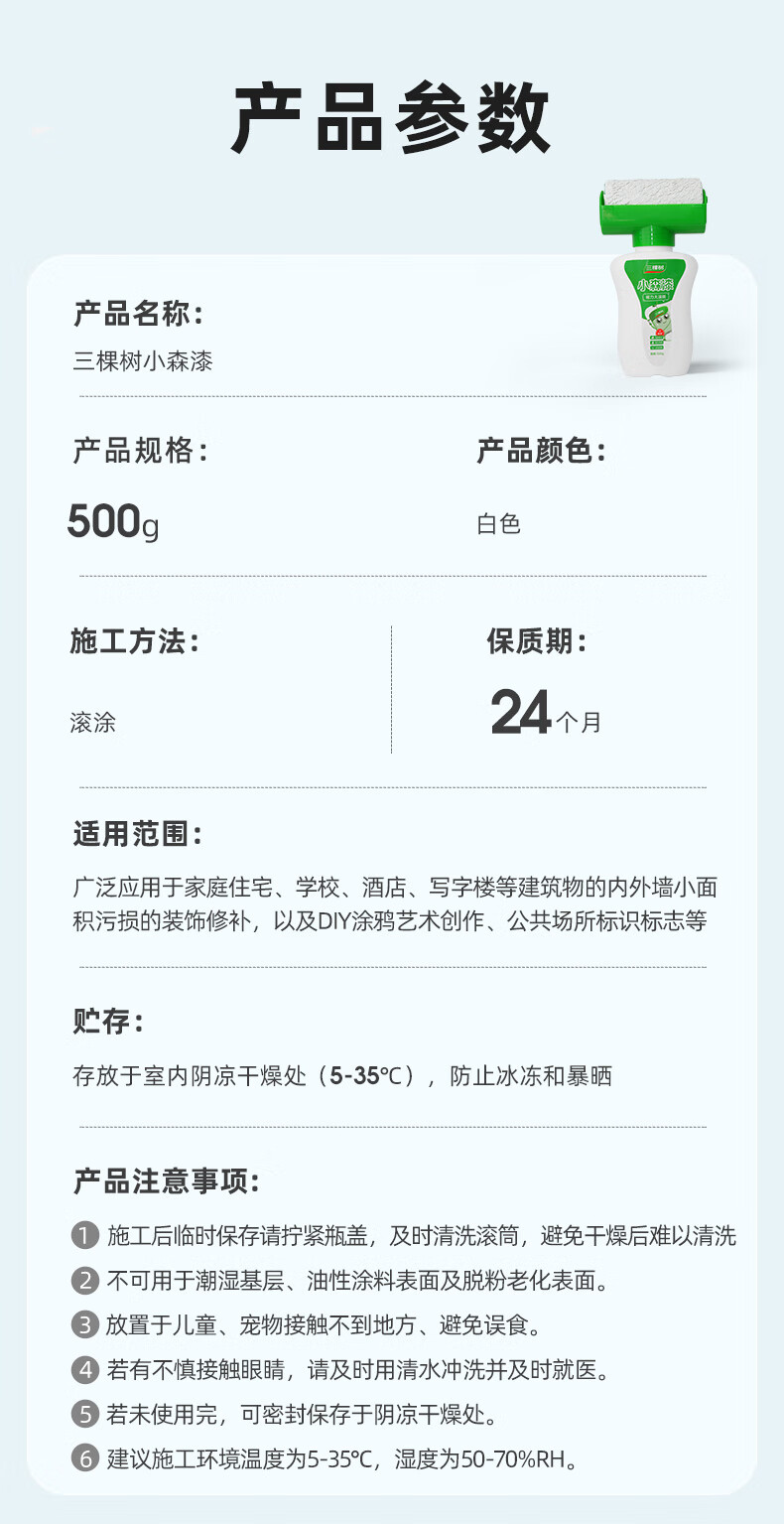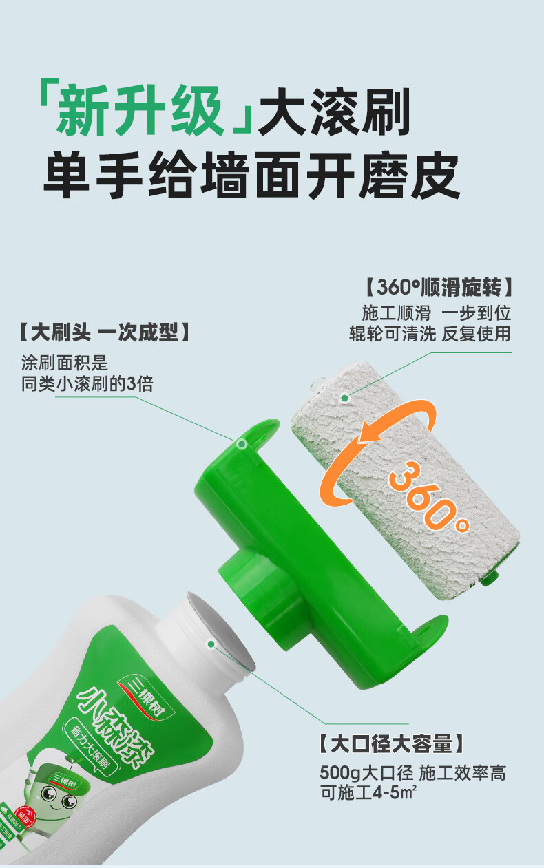 三棵树漆滚筒漆墙面修补去污翻新清洁涂鸦修复自喷漆内墙漆乳胶漆500g