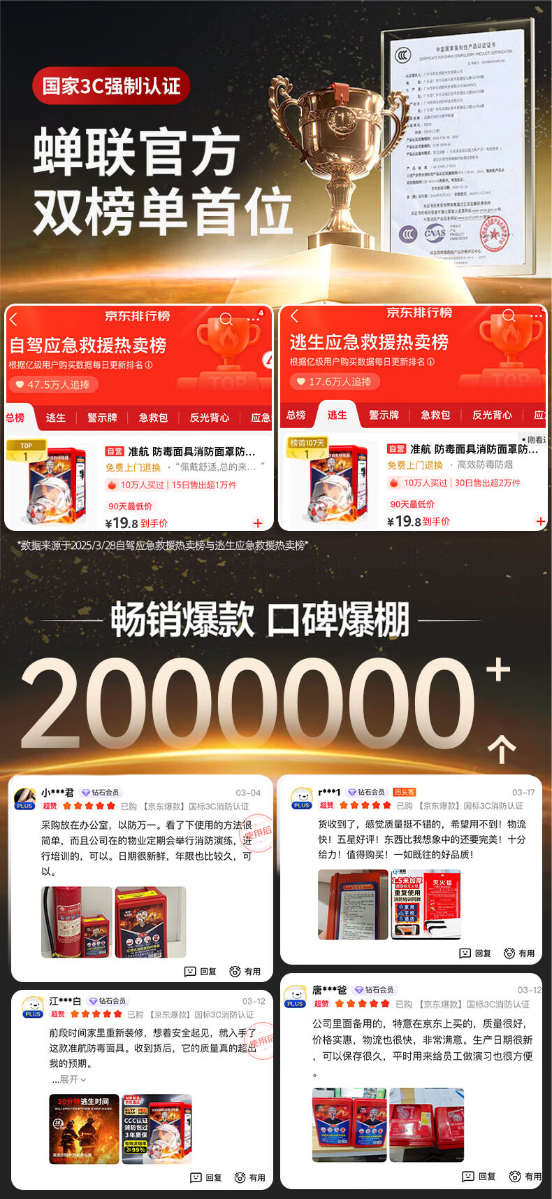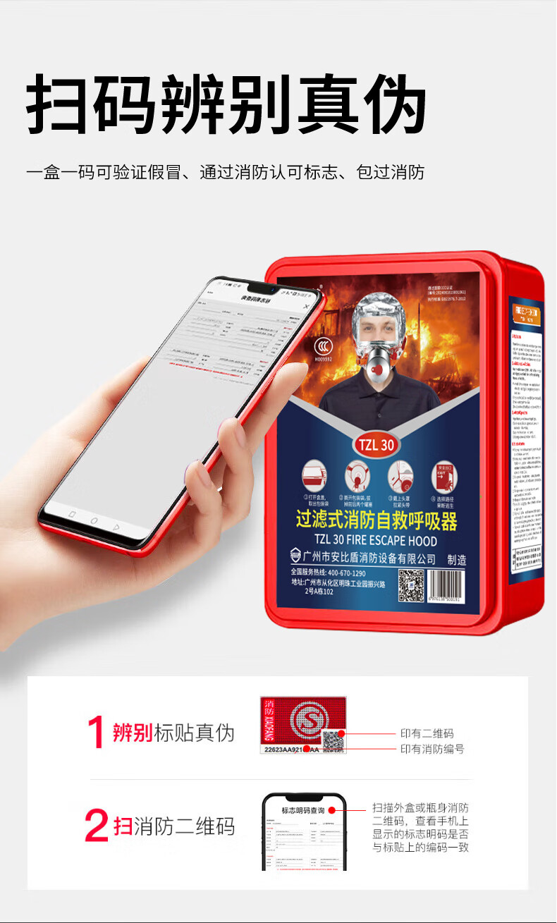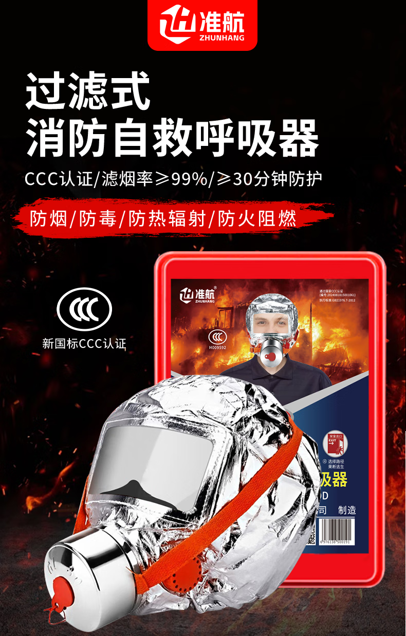 准航 防毒面具消防面罩防烟防火面罩3C认证逃生过滤式自救呼吸器TZL30