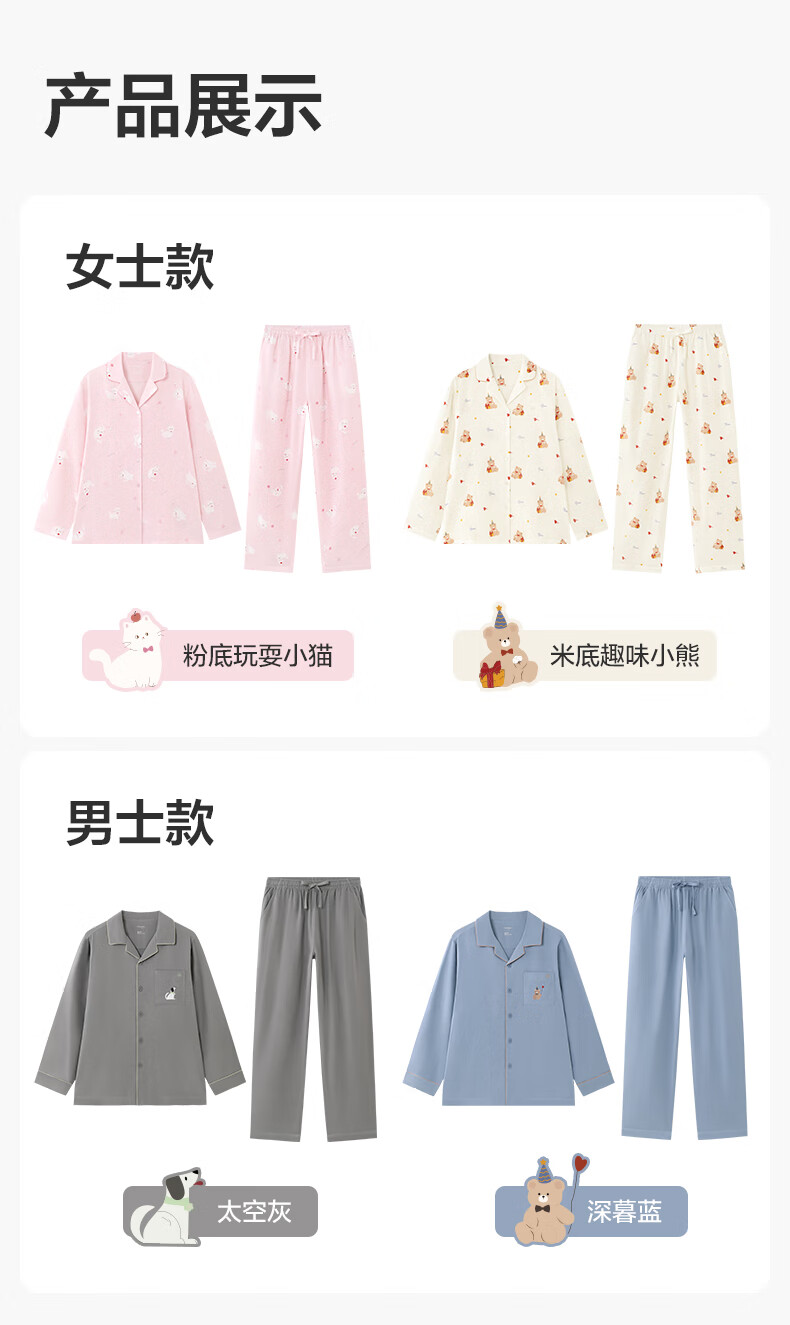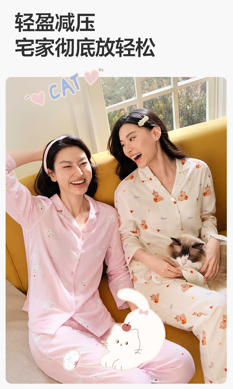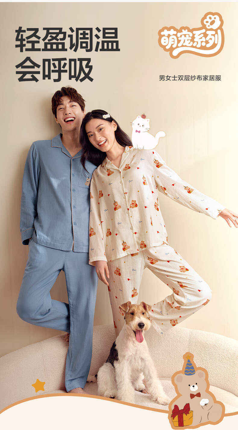 全棉时代25秋新品睡衣【轻盈柔软平衡热湿】萌宠情侣家居服双层纱布印花