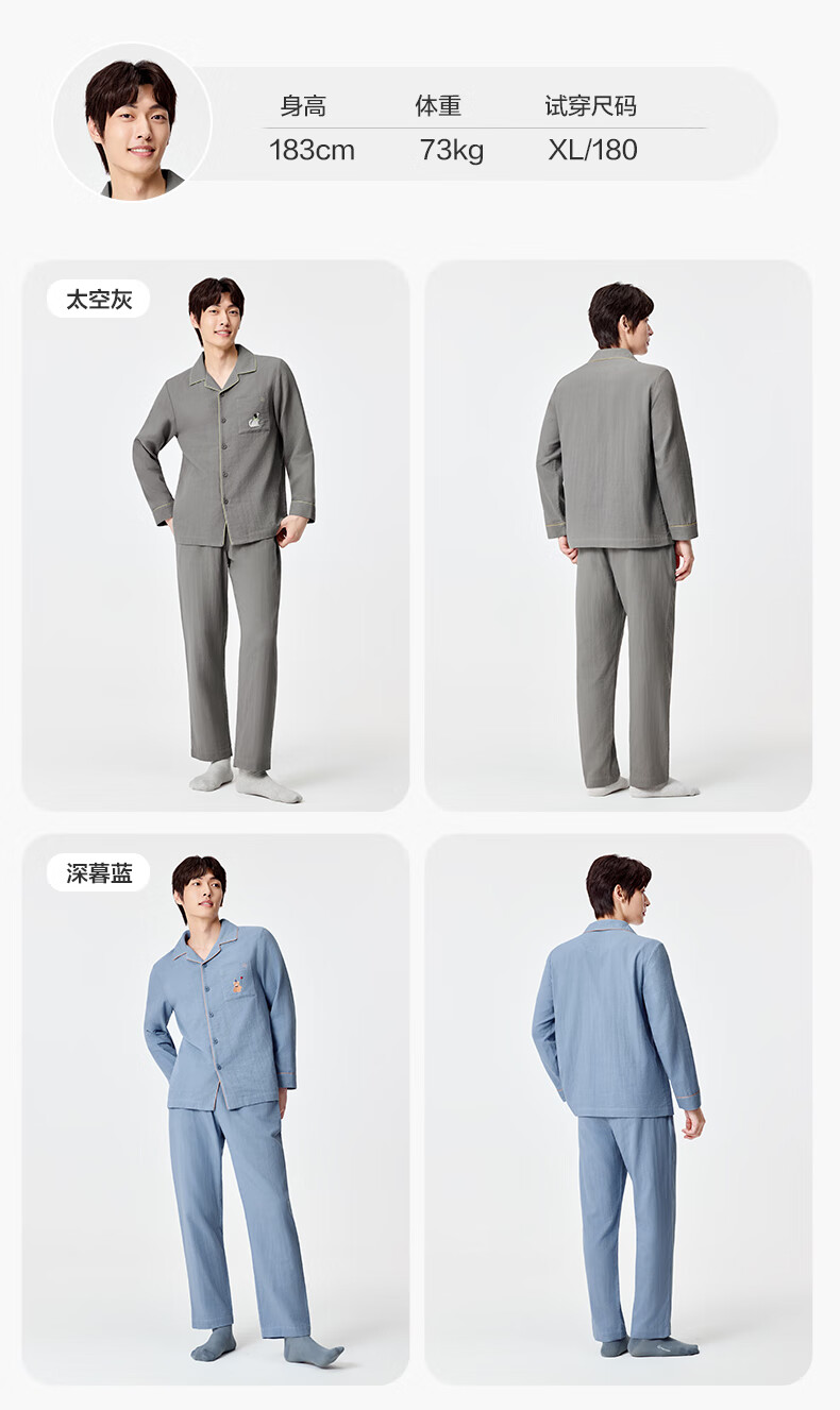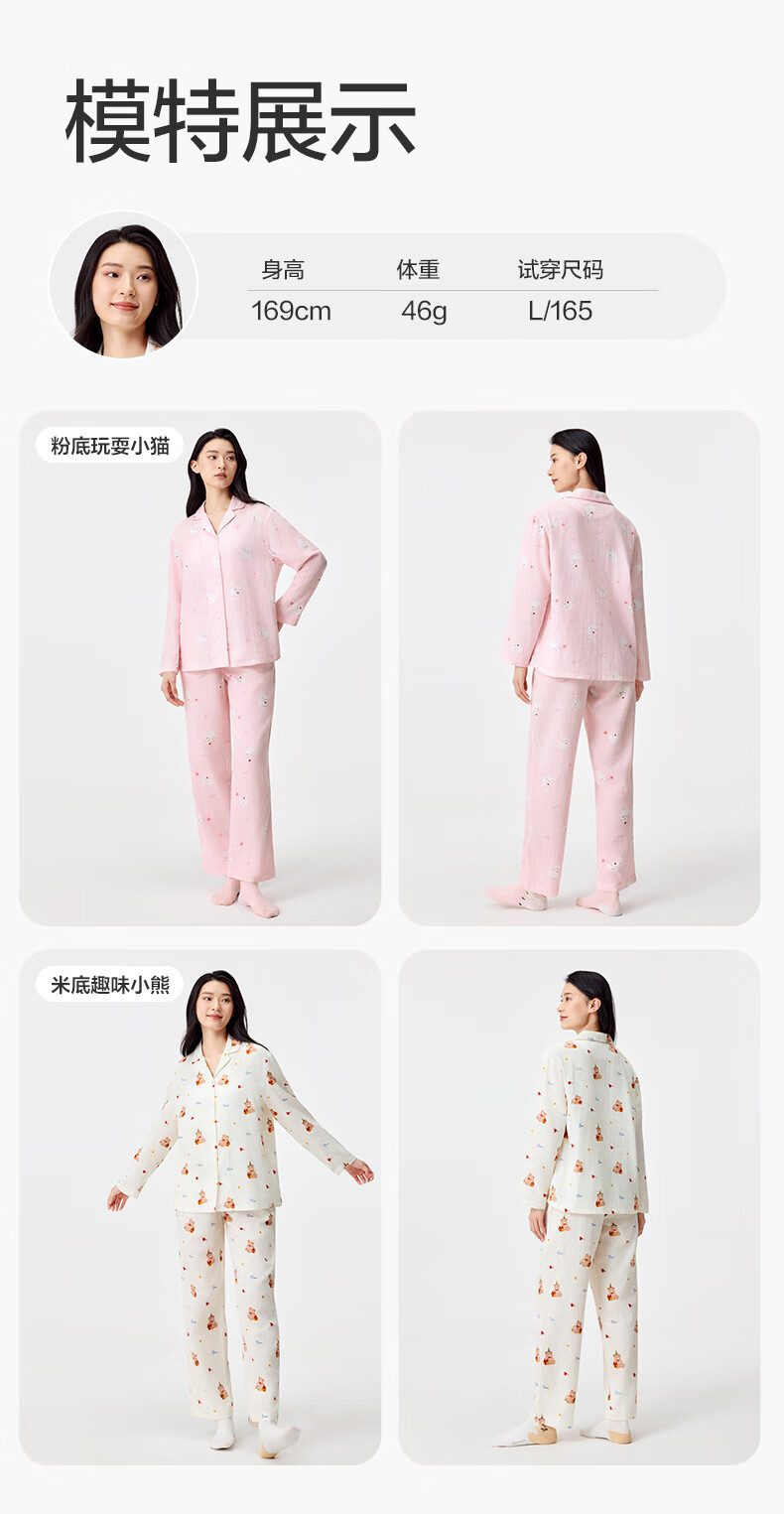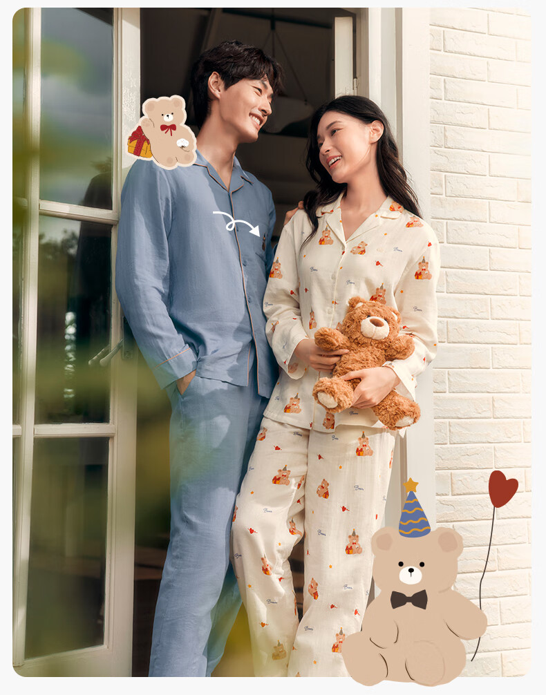 全棉时代25秋新品睡衣【轻盈柔软平衡热湿】萌宠情侣家居服双层纱布印花