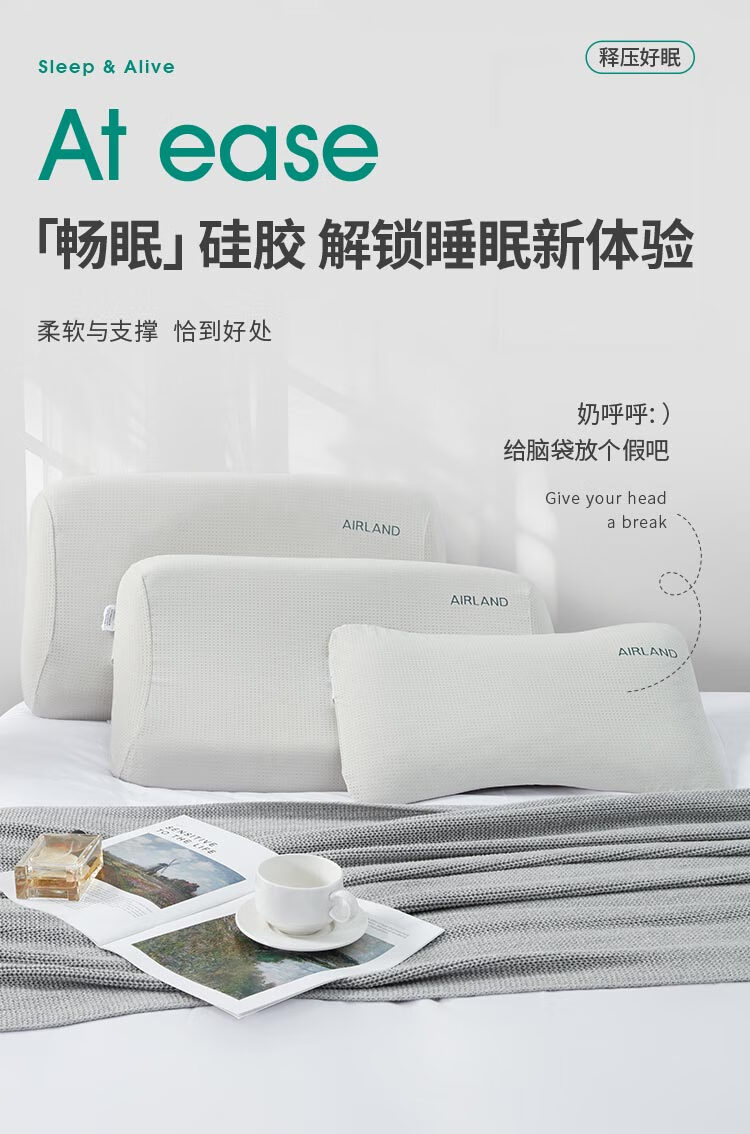 雅兰家纺【线下同款】畅眠硅胶枕 按摩承托护颈椎成人枕芯礼物 可清洗 奶呼呼【柔软+支撑】A款(61*38*8.5cm) 单只