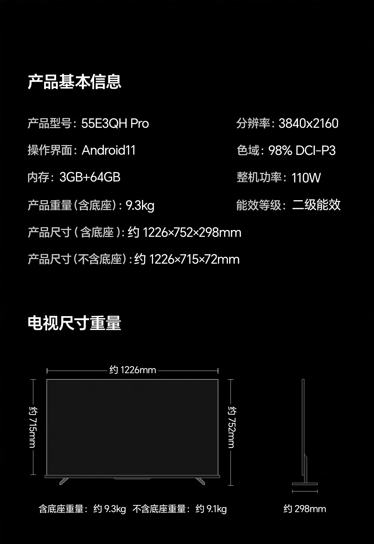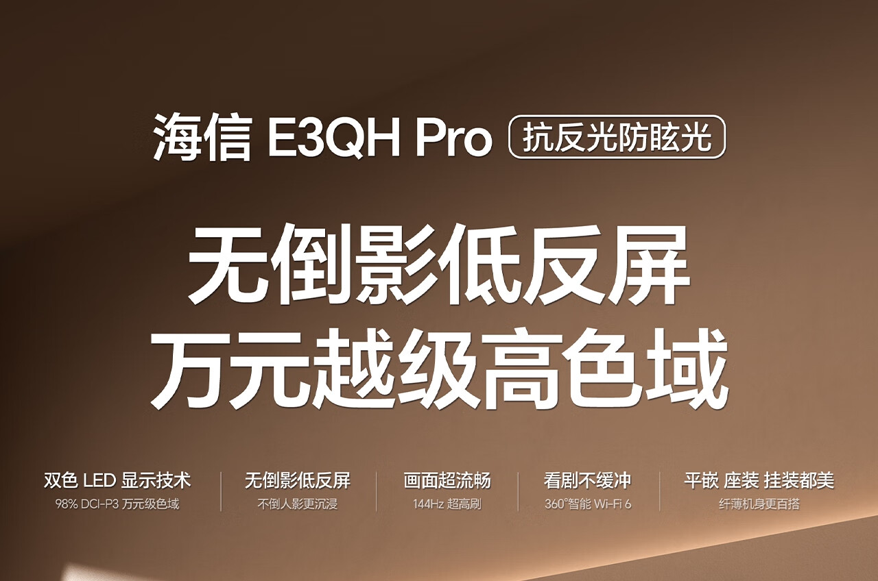 海信电视E3QH Pro 55英寸【送装一体-固定挂架】万元级高色域 抗反光无倒影144Hz高刷限时补贴电视