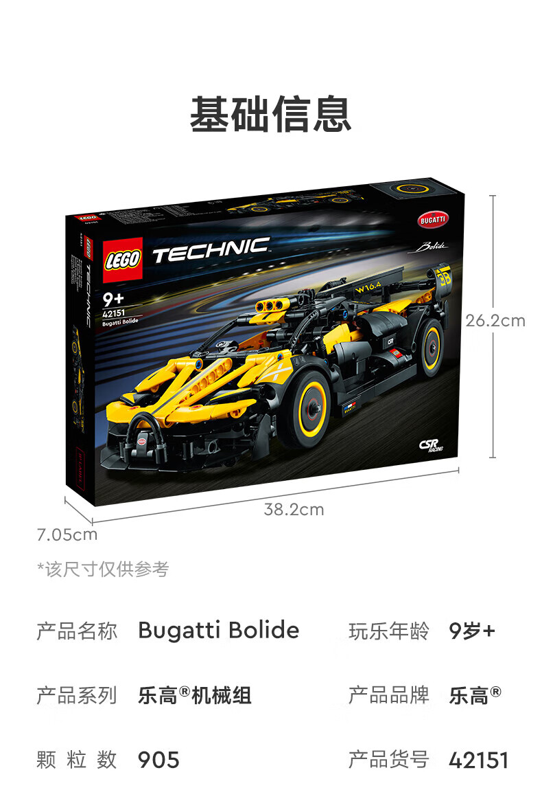 乐高(LEGO)积木玩具【全新】机械组42151布加迪赛车 9岁+儿童玩具生日礼物