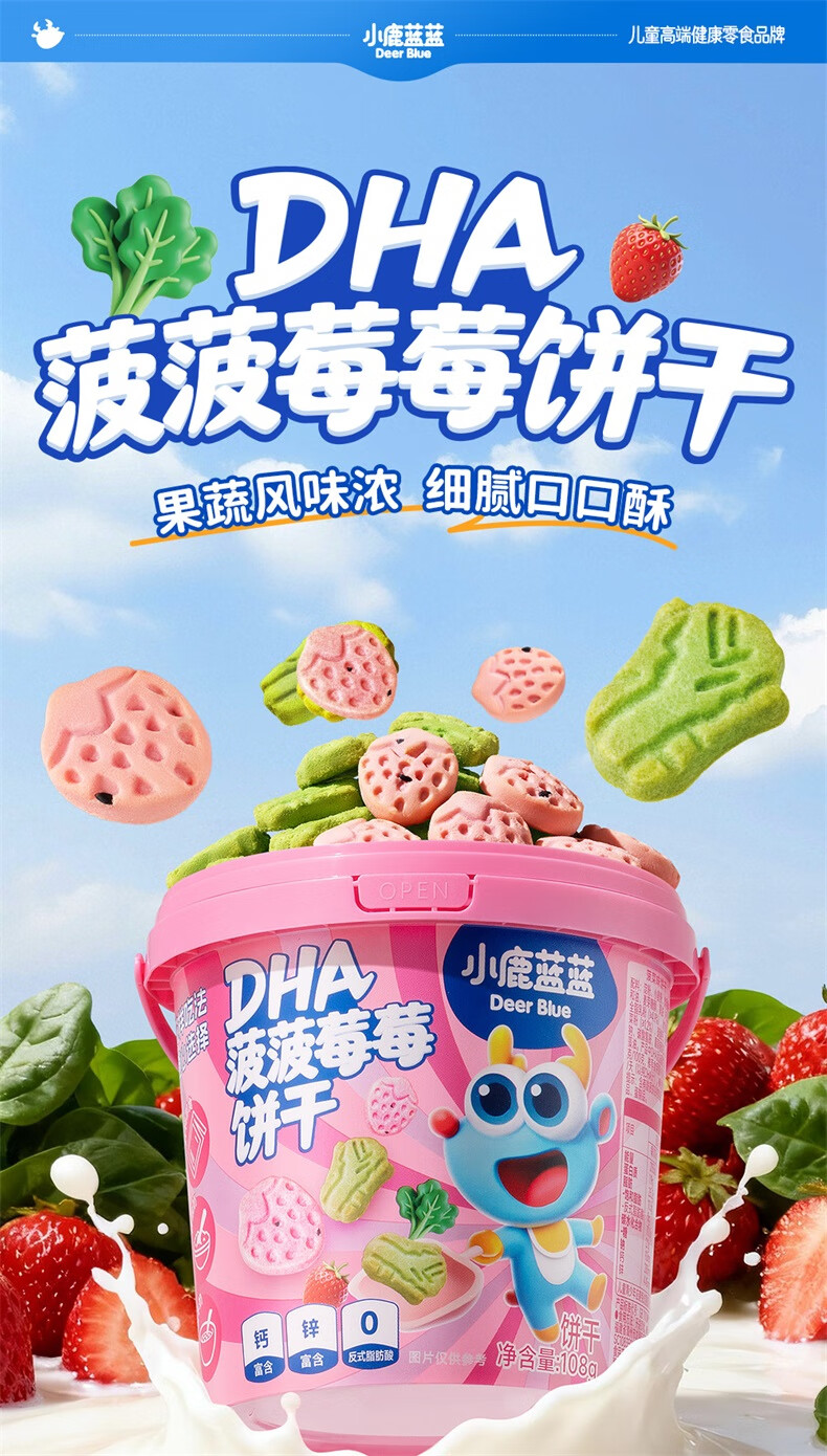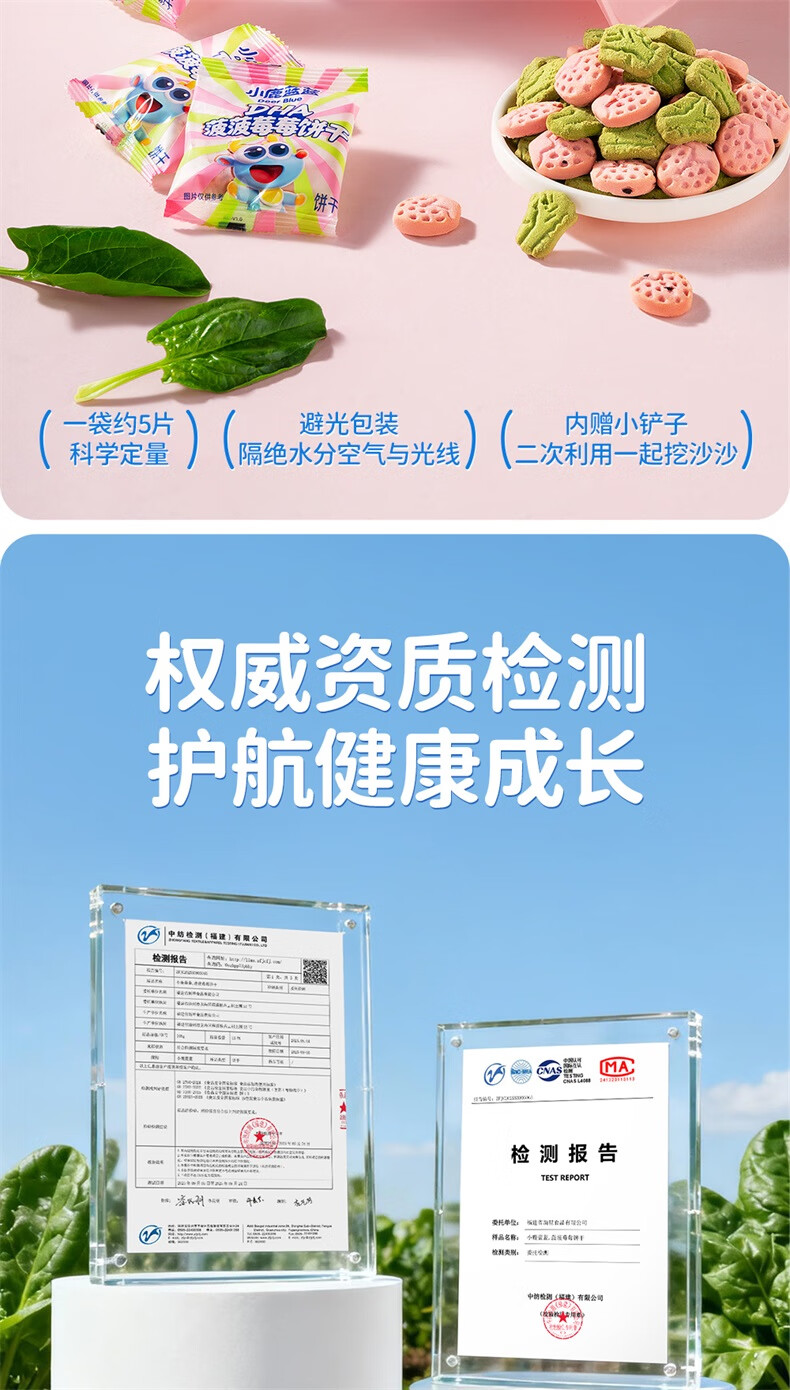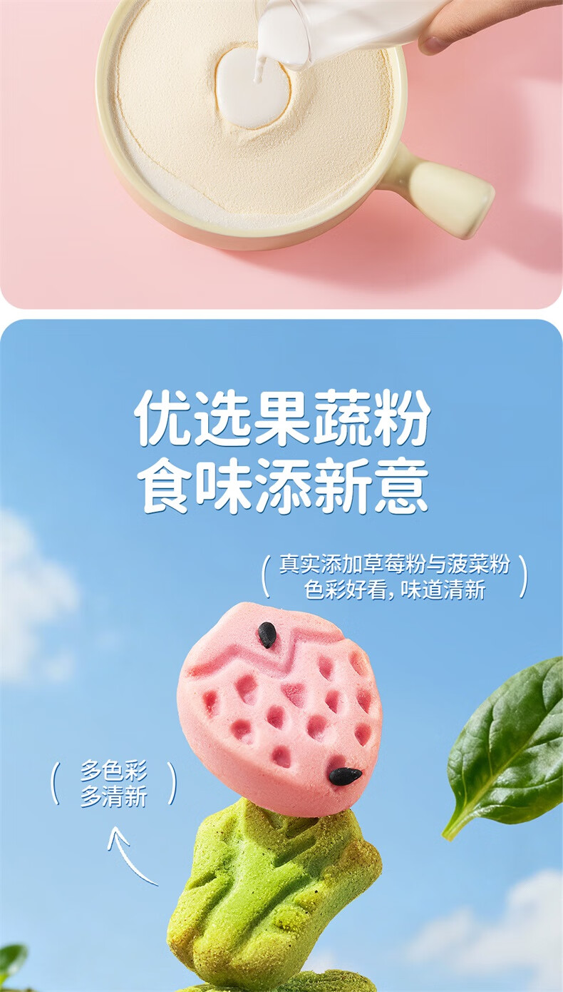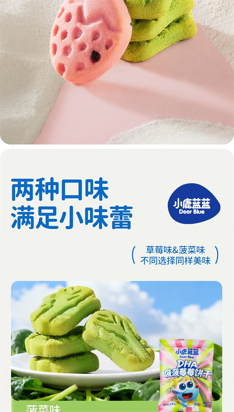 小鹿蓝蓝菠菠莓莓宝宝饼干菠菜草莓味儿童零食卡通饼干蔬菜儿童饼干108g