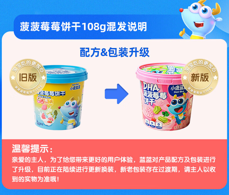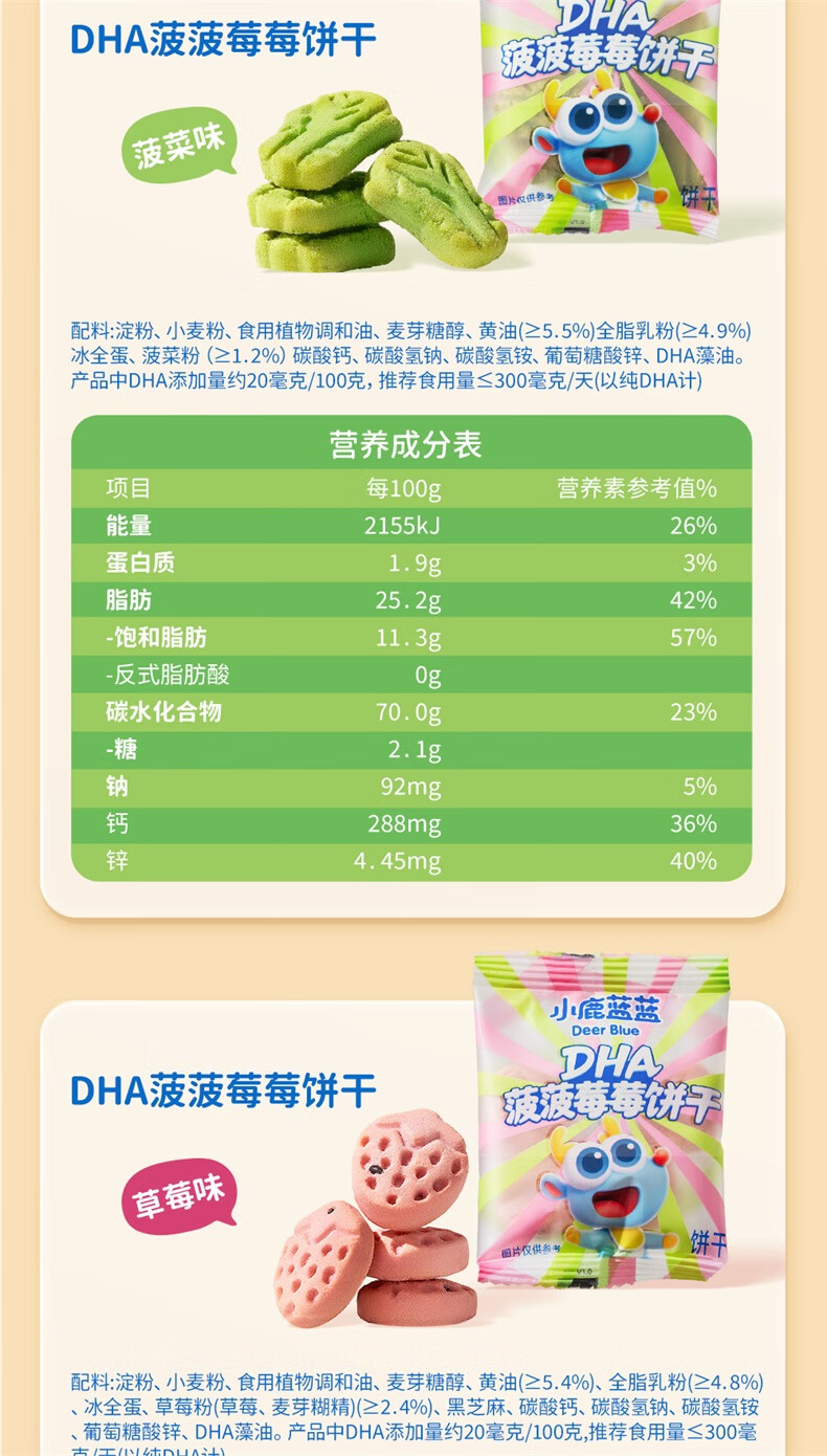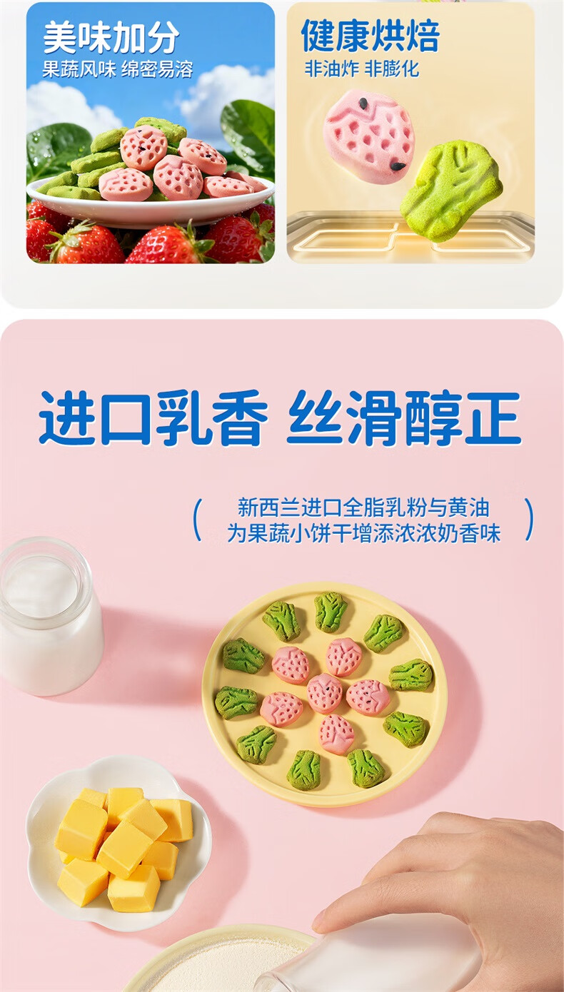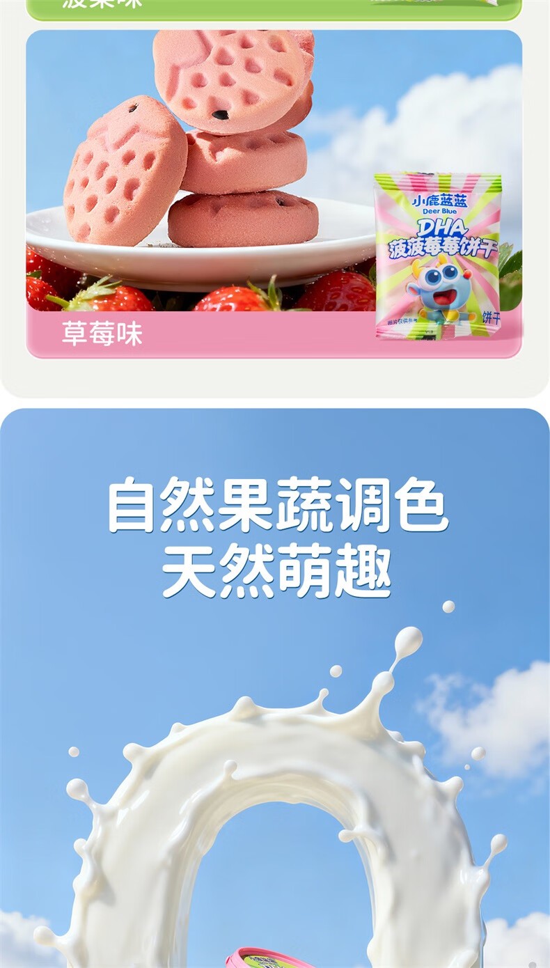 小鹿蓝蓝菠菠莓莓宝宝饼干菠菜草莓味儿童零食卡通饼干蔬菜儿童饼干108g