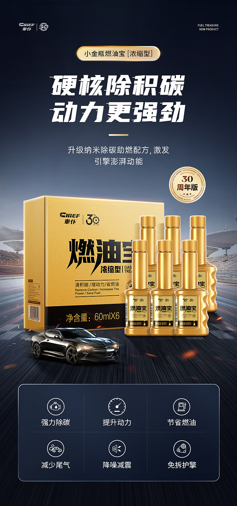 車仆(CHIEF)金瓶燃油宝除积碳pea燃油添加剂发动机清洗剂3支装