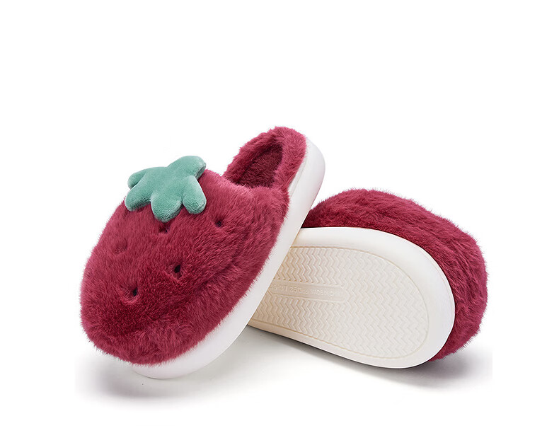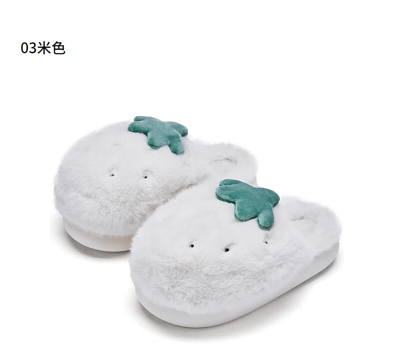 热风【商场同款】女鞋可爱草莓棉拖鞋女2025年冬季新款加绒居家包头拖 03米色 40-41 L