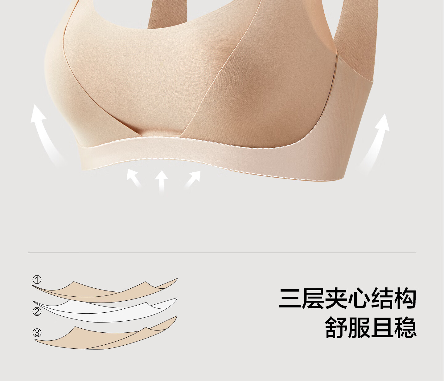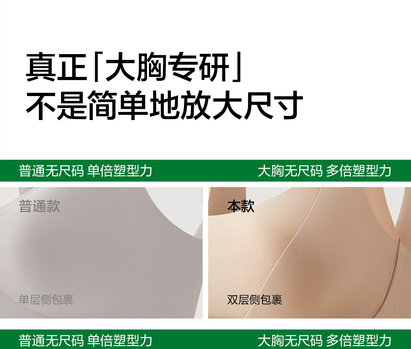 有棵树女士内衣女大胸显小无尺码收副乳无痕提拉塑型防下垂粉底液文胸 隐形肤 均码 (F 丰盈版100-135斤/A-D杯 卡码选大)