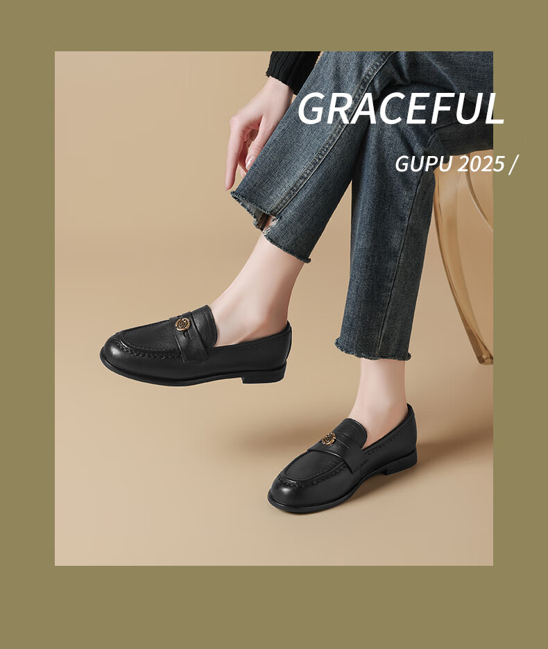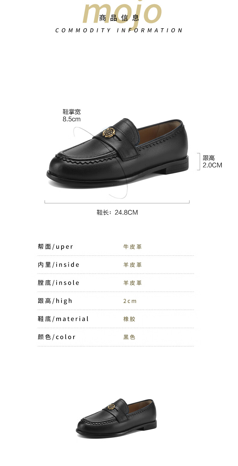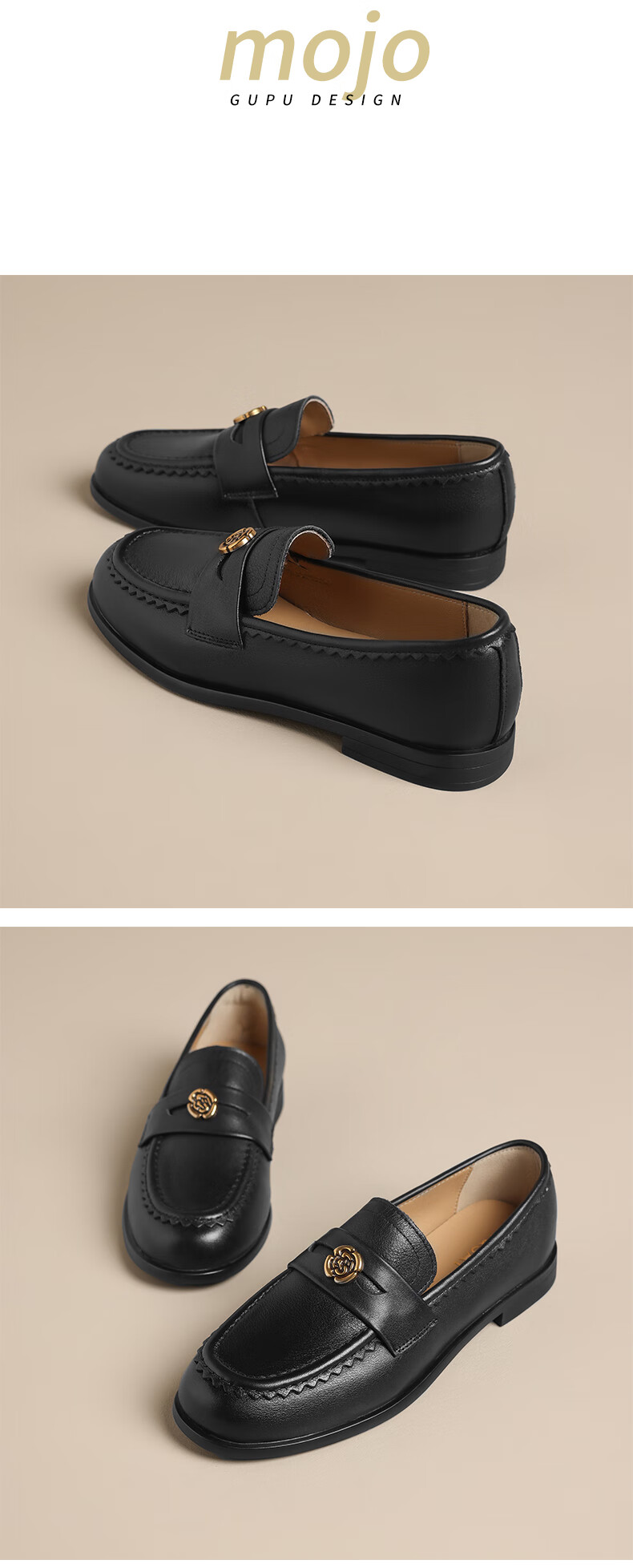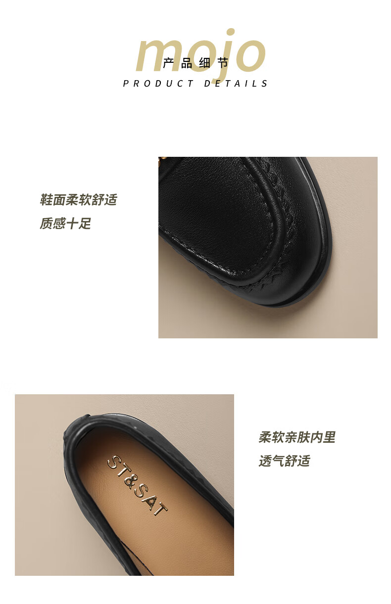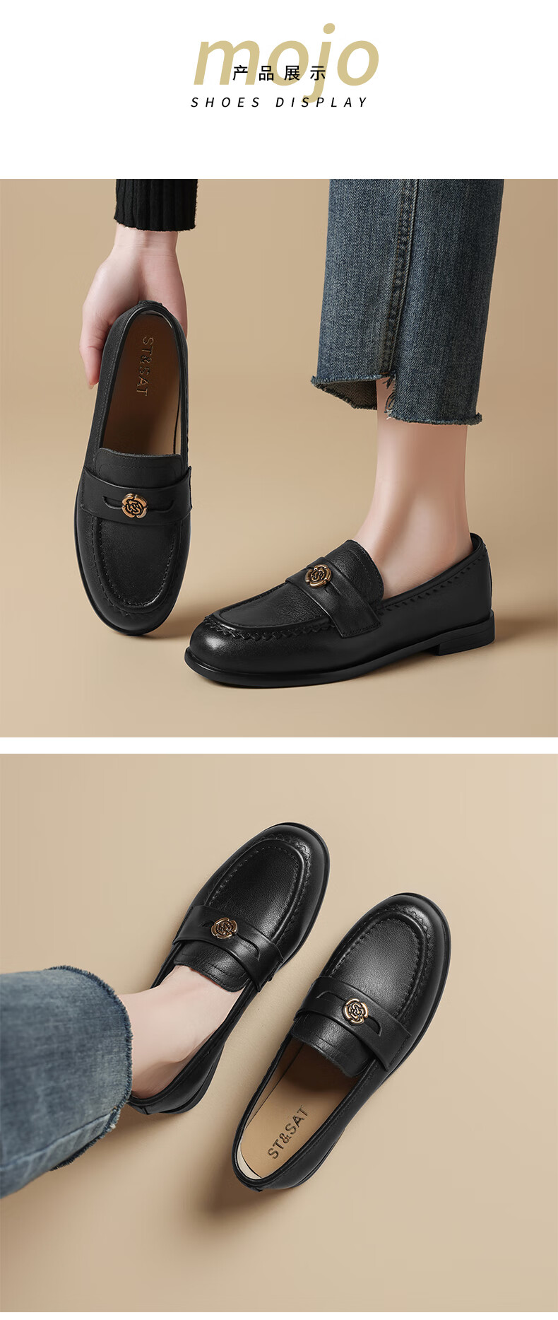 星期六(St&Sat)复古许愿币乐福鞋2025春季新款英伦风软皮通勤小皮鞋SZSSD1111P37 黑色 39