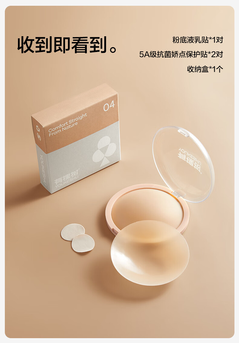 有棵树粉底液乳贴|夏季隐形硅胶胸贴女婚纱吊带睡衣用防凸点 暖白肤 Warm 均码