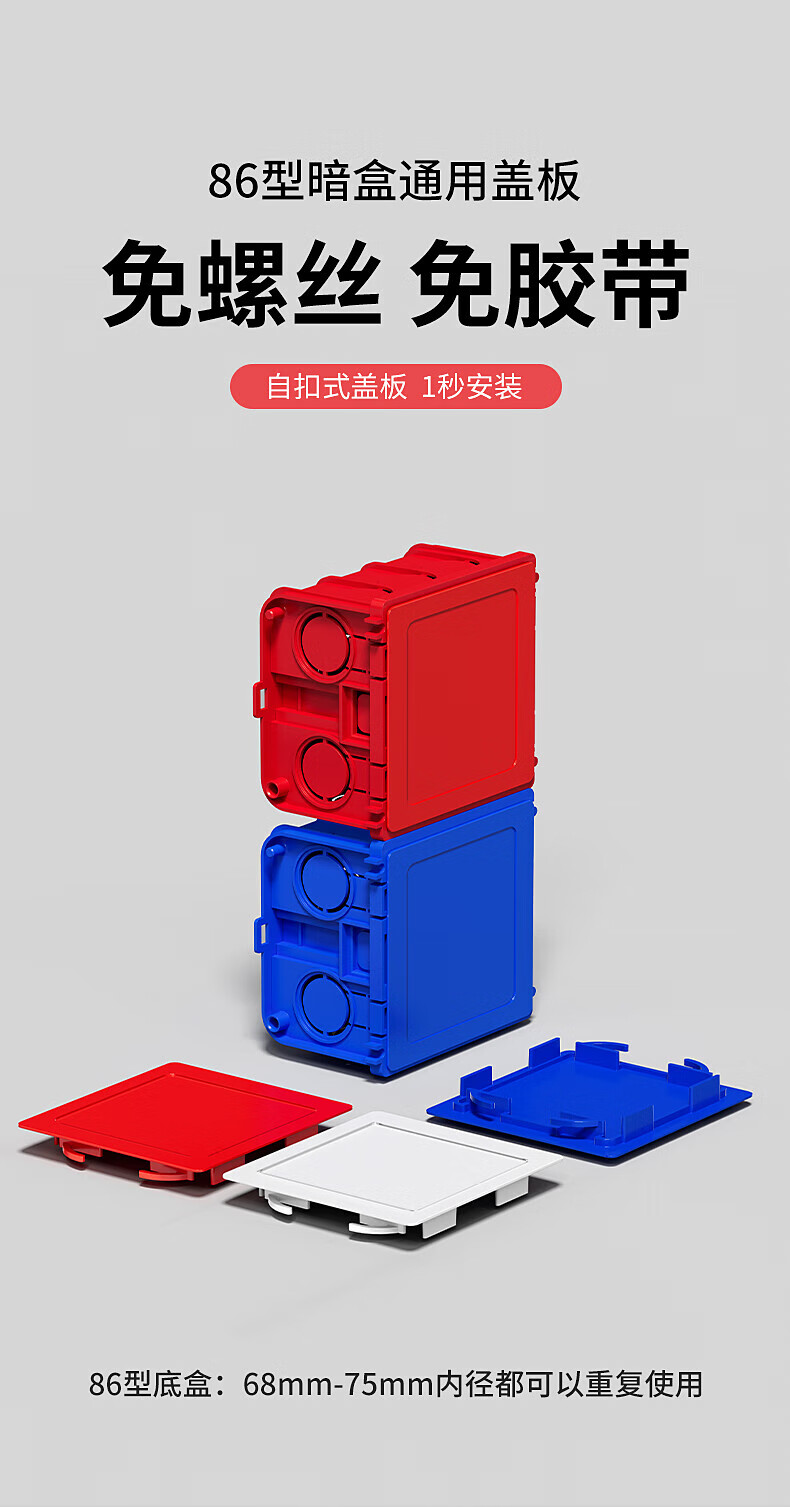 国际电工(FDD)86型暗盒通用盖板装修底盒PVC塑料开关插座线盒自扣式盖板 红色丨自扣式盖板-1只装
