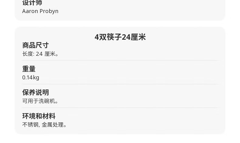 宜家(IKEA)【新品】TILLAGD提拉格不锈钢筷子餐筷分餐筷吃饭餐筷 黄铜色4双筷子24cm
