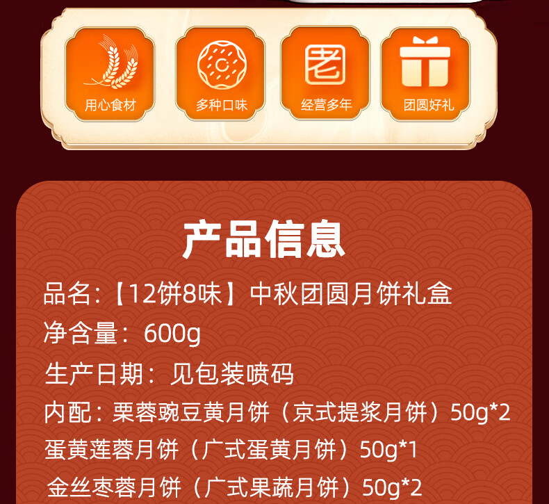 稻香村(DXC)月饼礼盒中秋团圆600g
