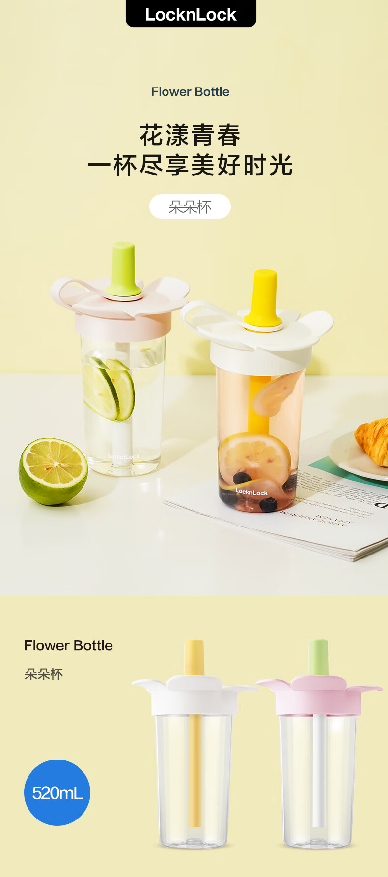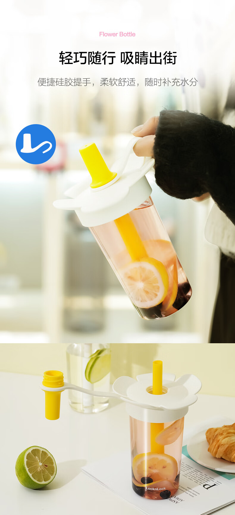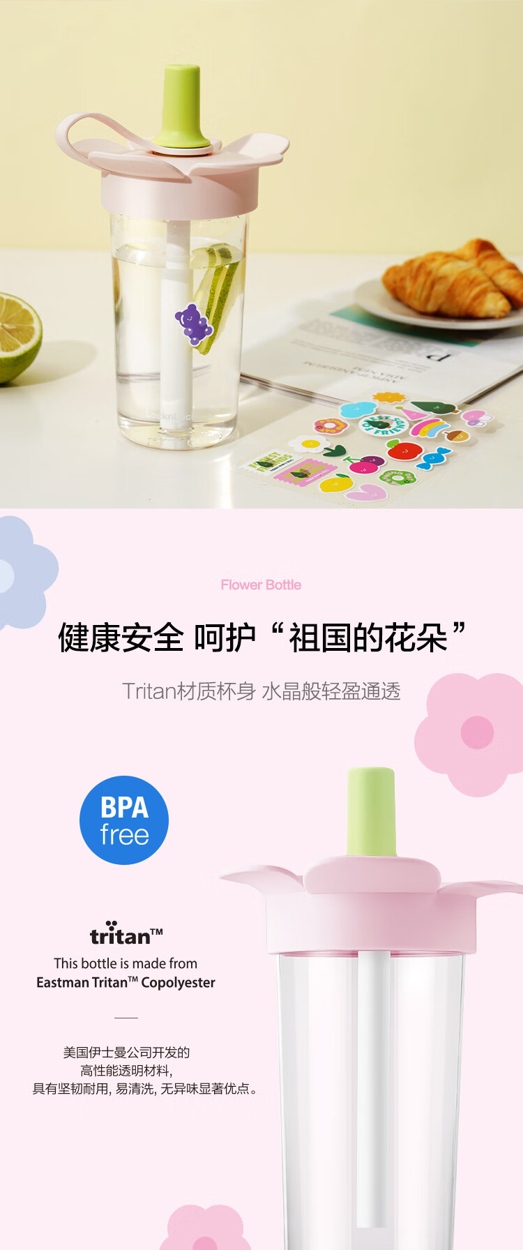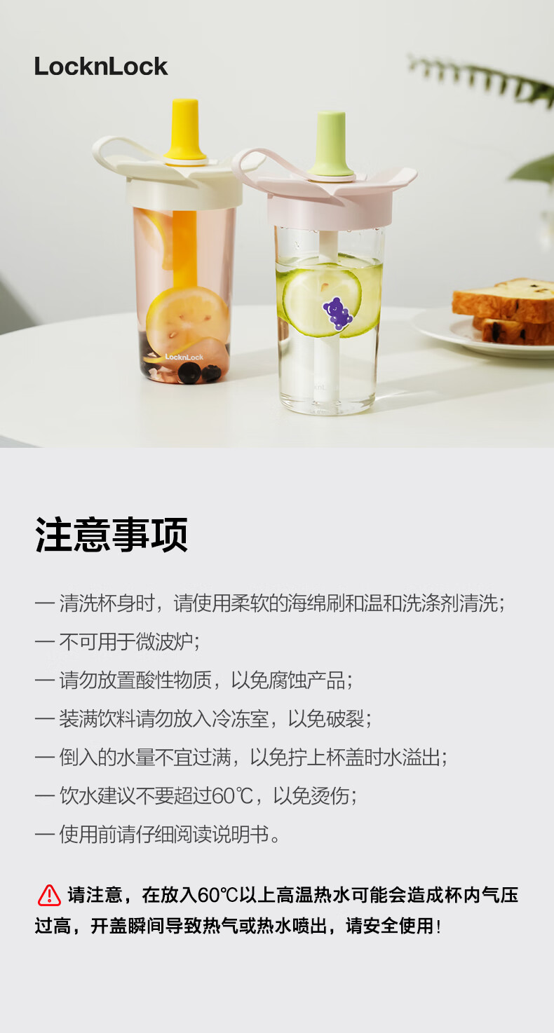 乐扣乐扣(LOCK&LOCK)儿童吸管水杯tritan材质学生户外便携手拎果汁奶茶杯子520ml粉色