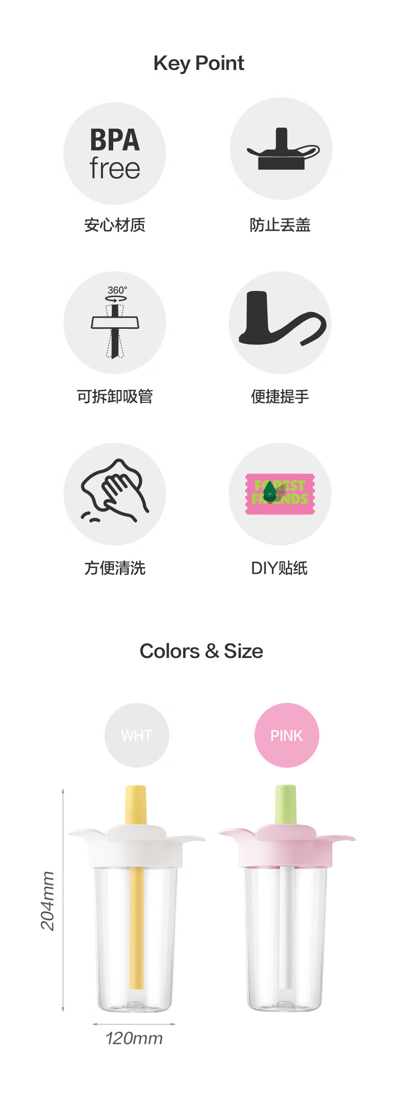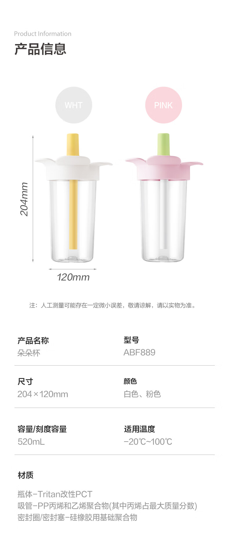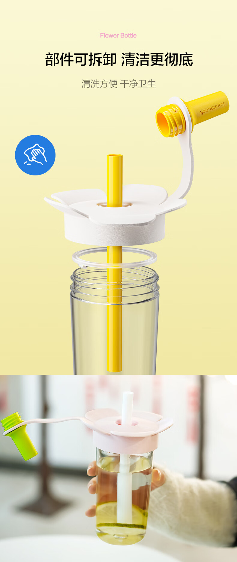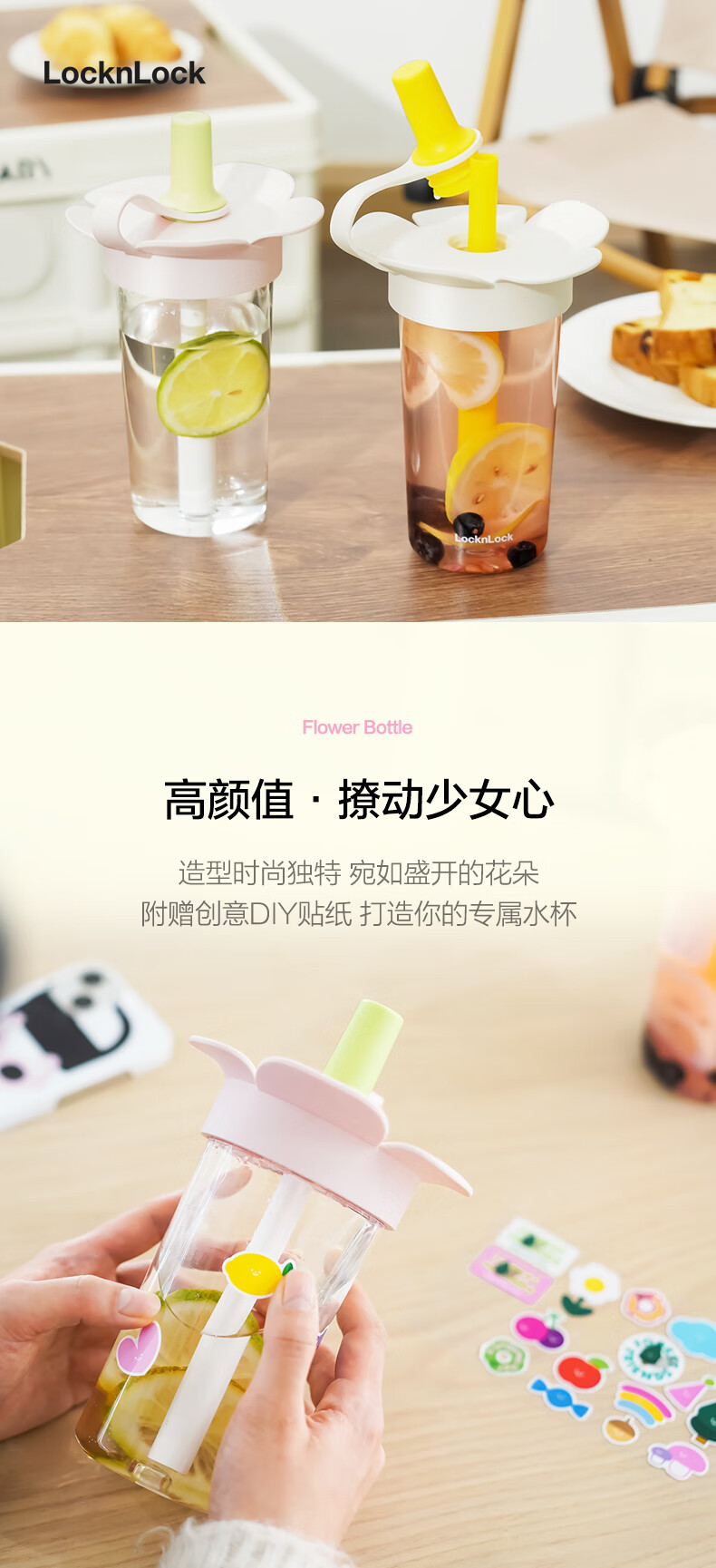 乐扣乐扣(LOCK&LOCK)儿童吸管水杯tritan材质学生户外便携手拎果汁奶茶杯子520ml粉色