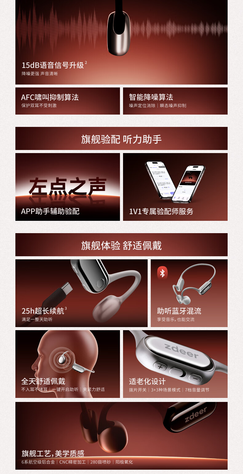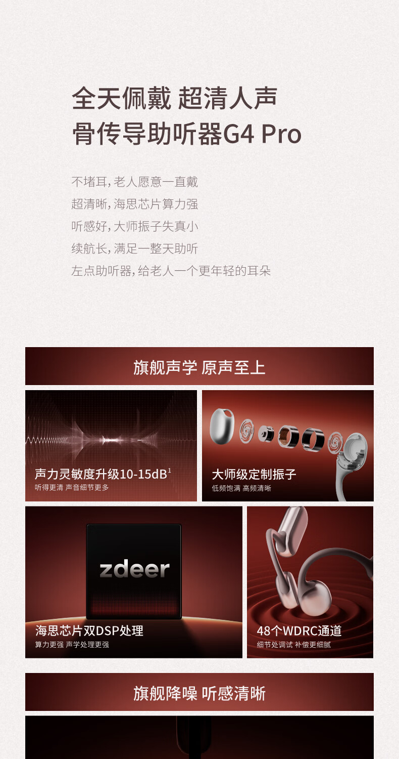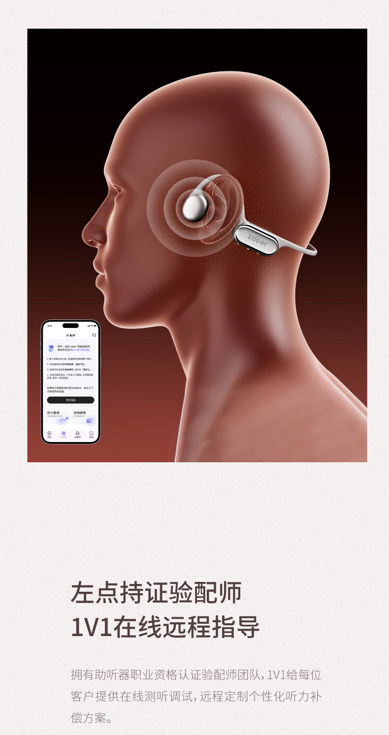 左点zdeer骨传导助听器g2401Plus中老年人中重度耳聋耳背专用降噪 二代plus|高清言语识别|续航升级|骨传尊享