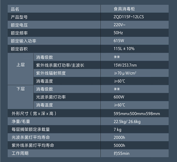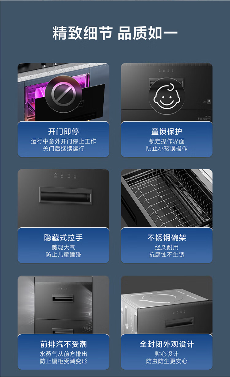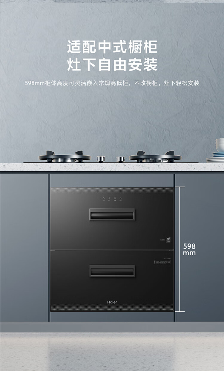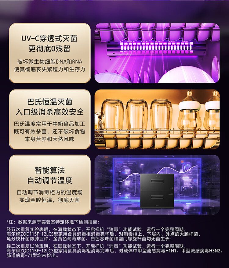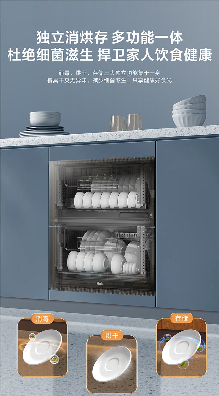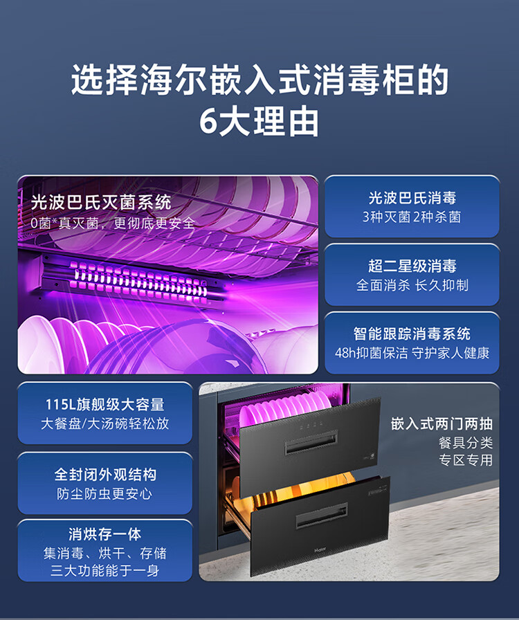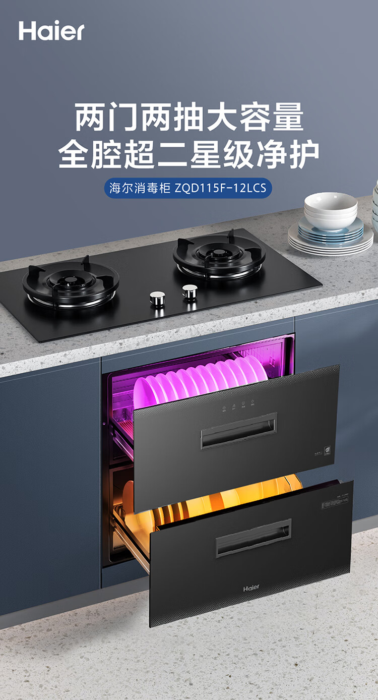 海尔(Haier)115L消毒柜家用嵌入式 大容量 双二星级 紫外线+光波巴氏消毒0臭氧 母婴消毒童锁保护12LCS
