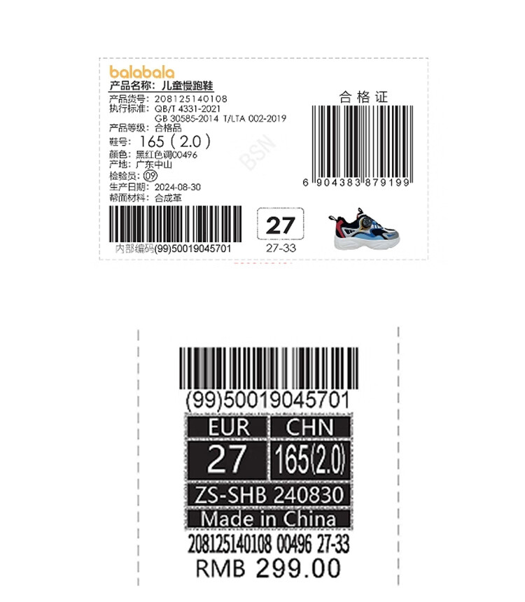 巴拉巴拉童鞋运动鞋男童老爹鞋2025春旋转扣防滑潮鞋子鞋208125140108