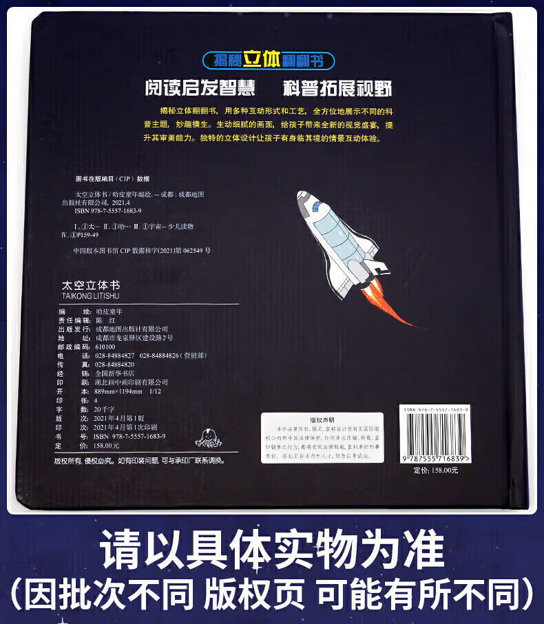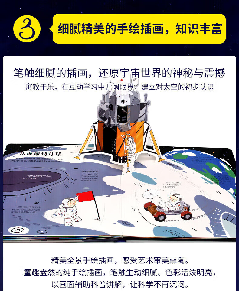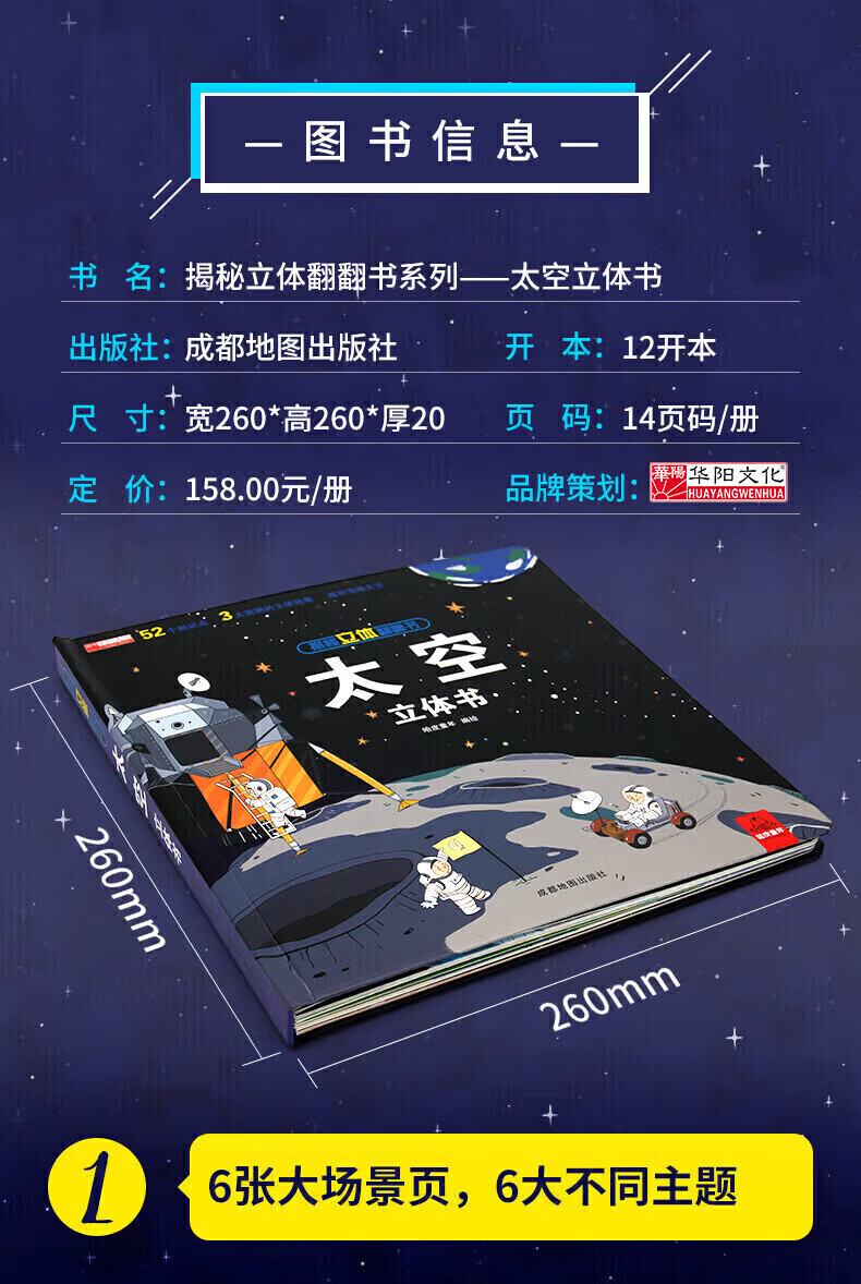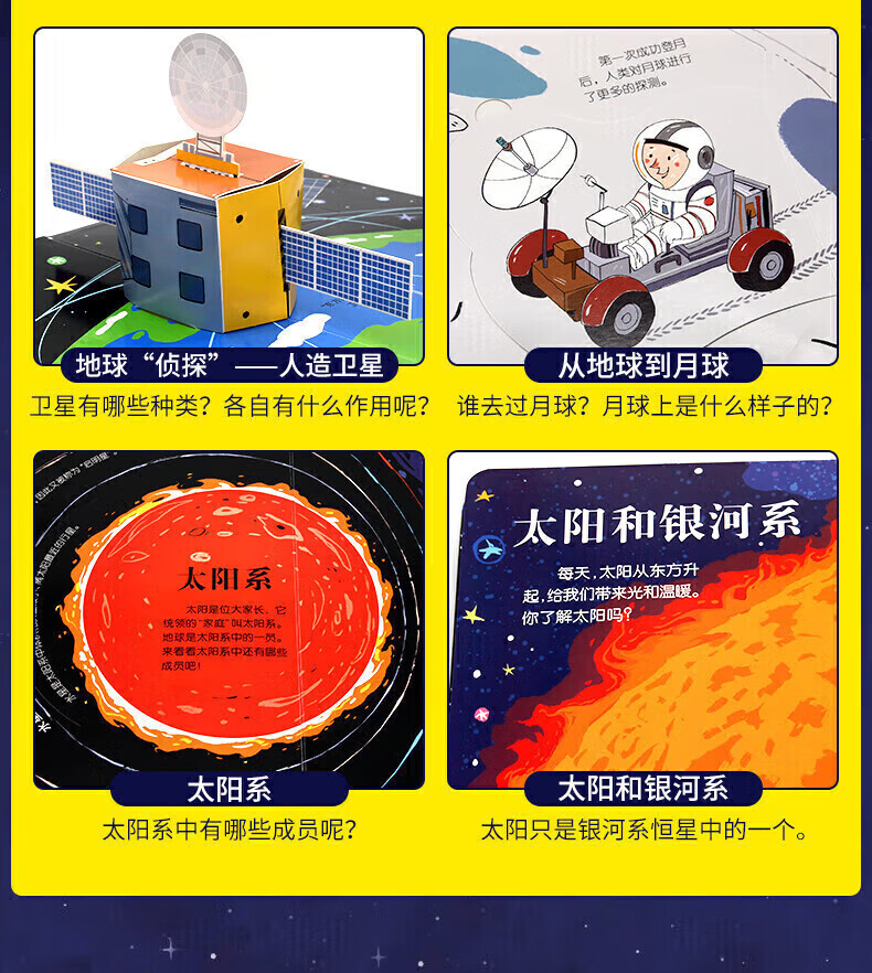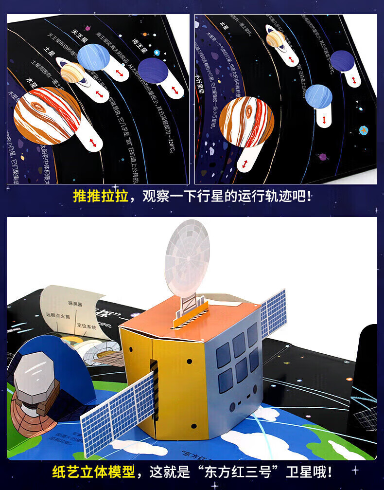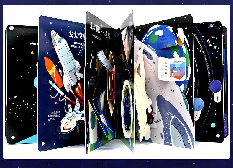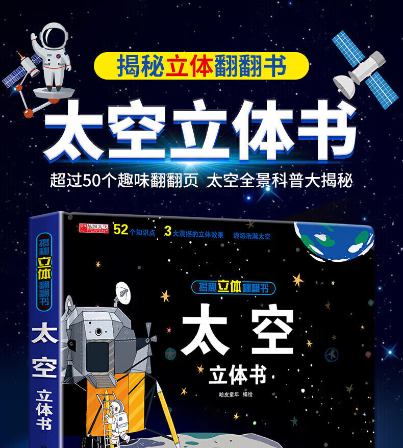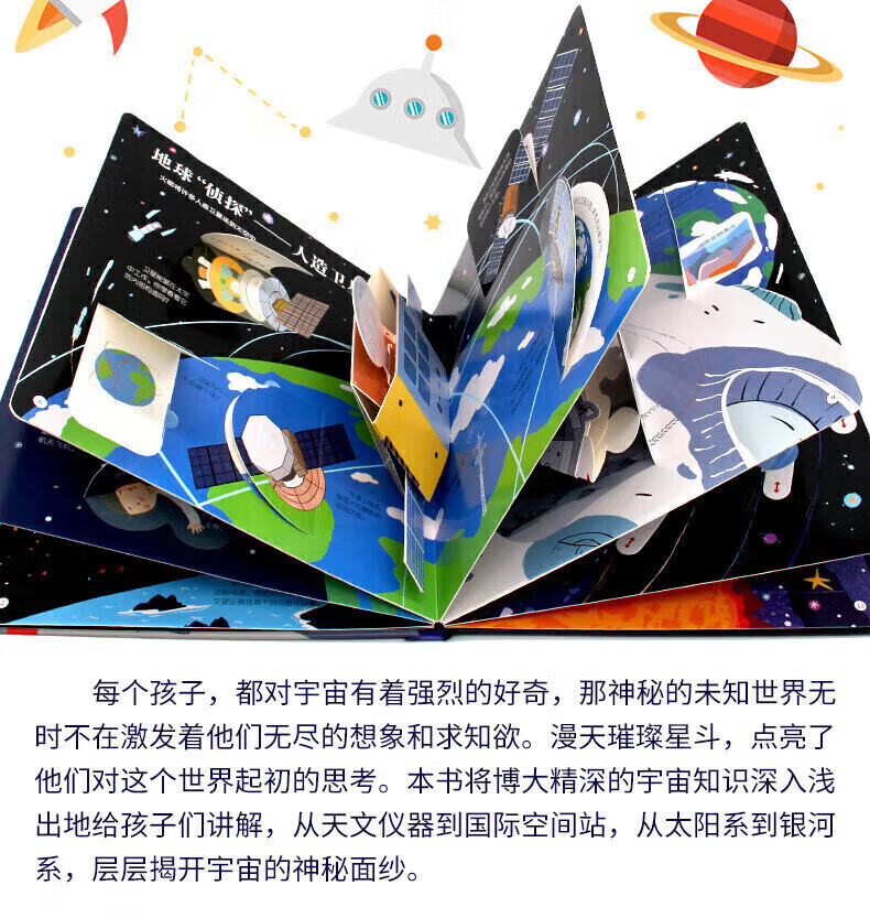 【当当童书】揭秘立体翻翻书系列共4册恐龙昆虫海洋太空中国科普儿童3D立体书3-6-9岁翻翻书宝宝启蒙籍绘本早教故事书 【3d立体大开本】--太空