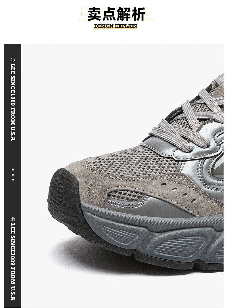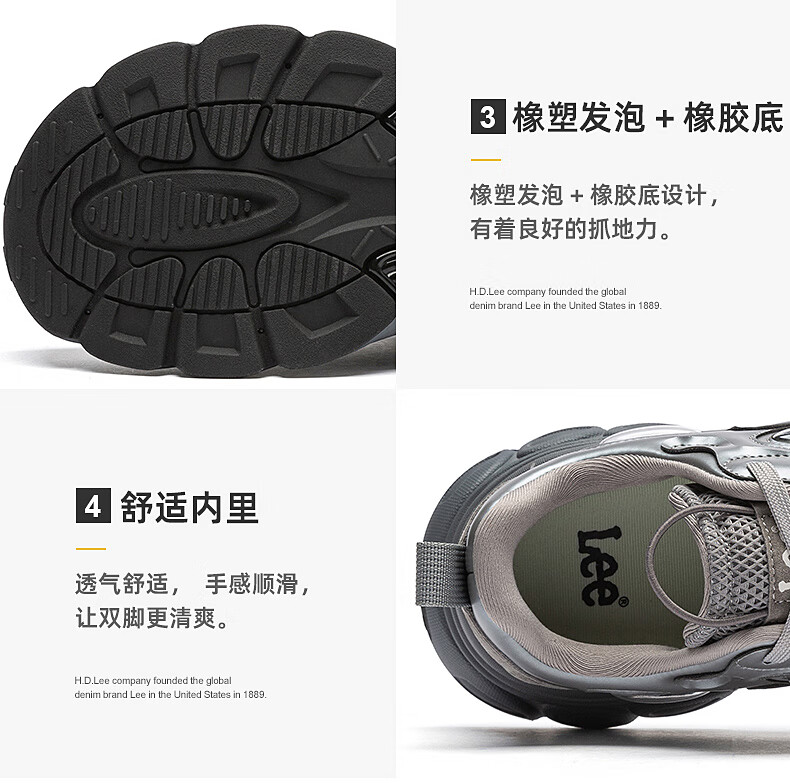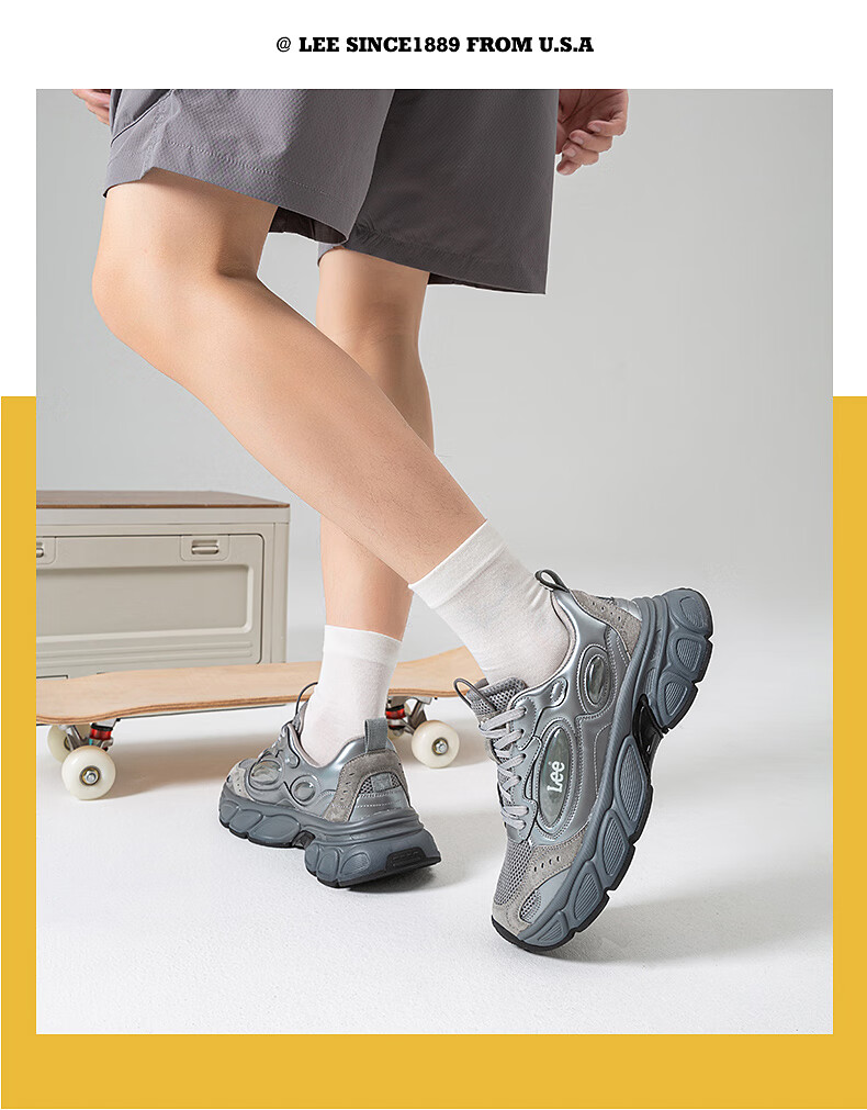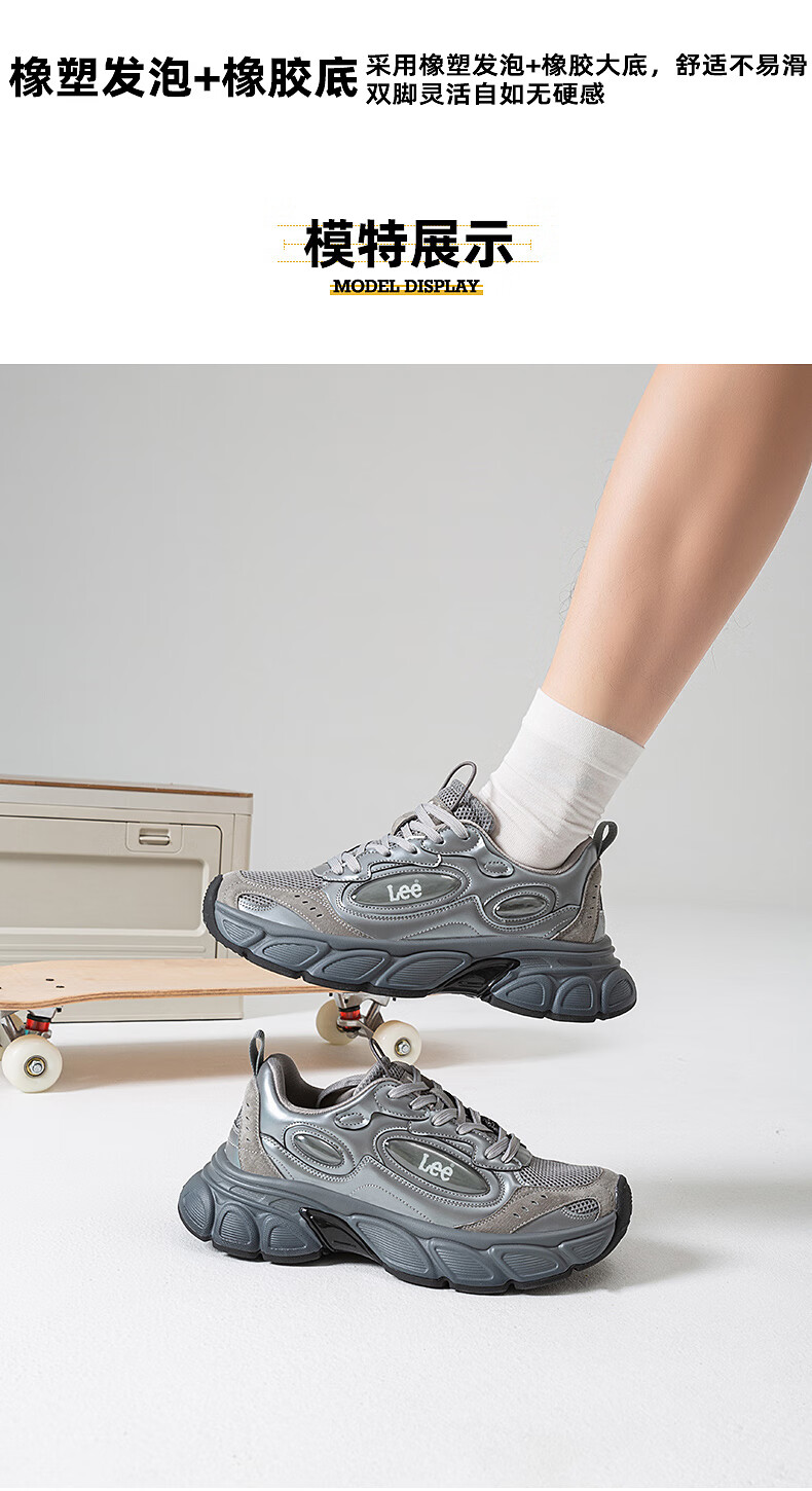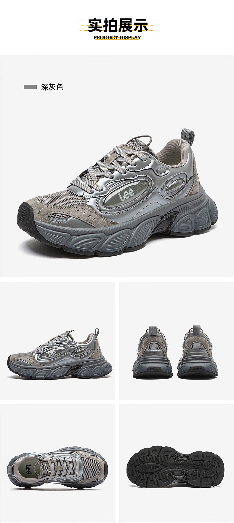 Lee男鞋时尚潮流老爹鞋厚底增高休闲鞋百搭潮牌鞋子男轻便跑步运动鞋 灰色 44 【偏大/请拍小一码】