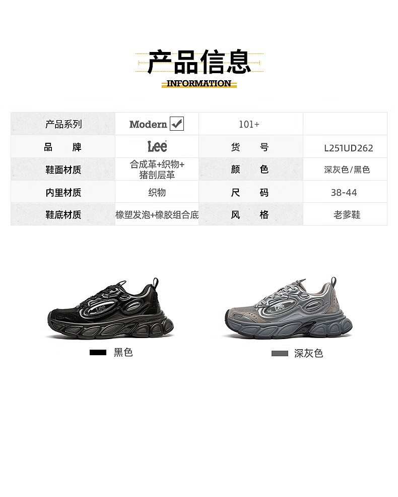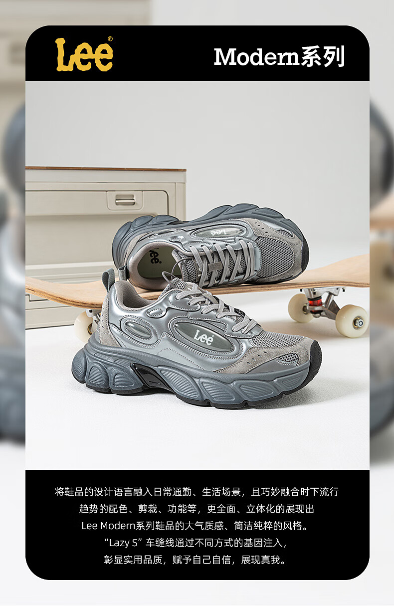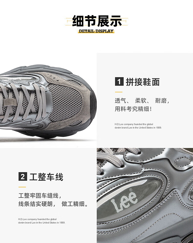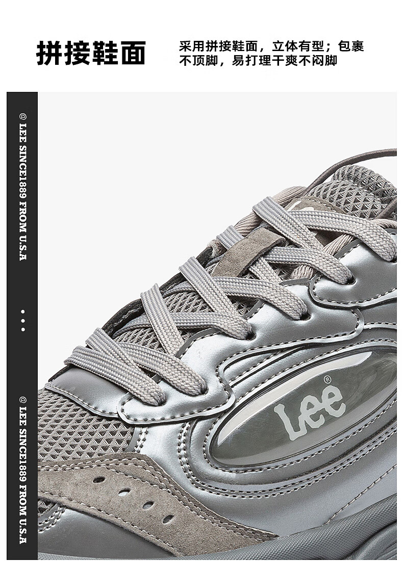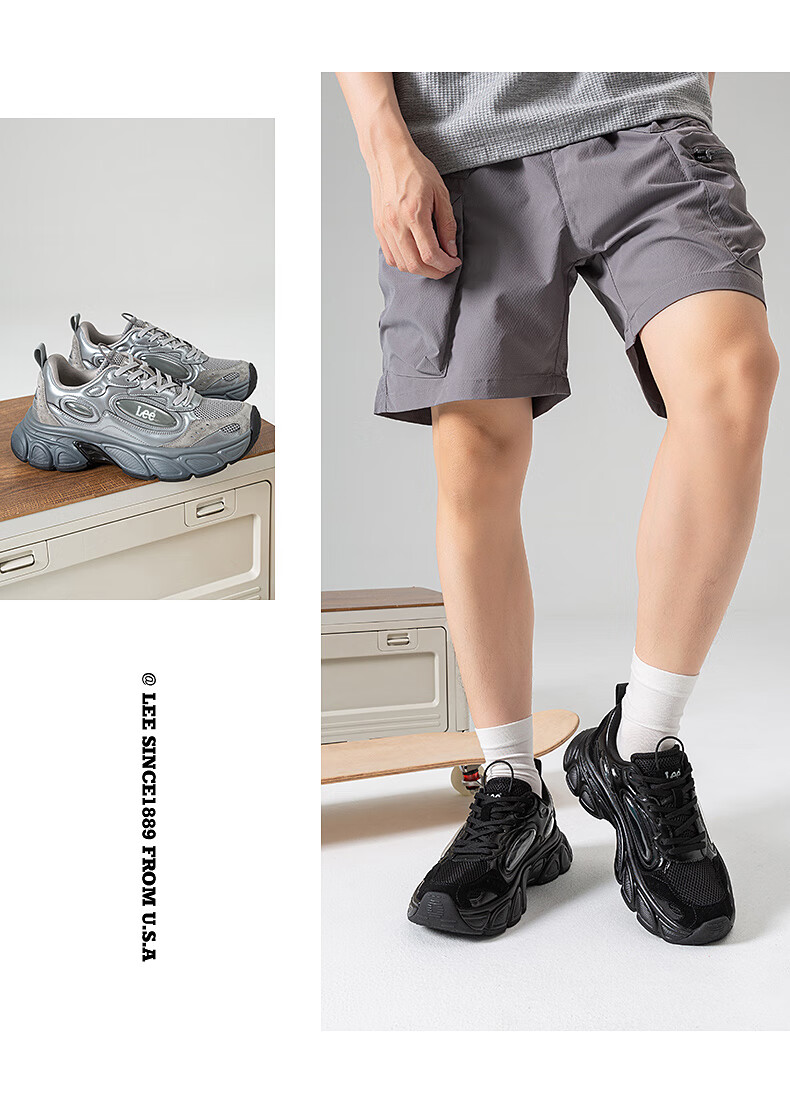 Lee男鞋时尚潮流老爹鞋厚底增高休闲鞋百搭潮牌鞋子男轻便跑步运动鞋 灰色 44 【偏大/请拍小一码】